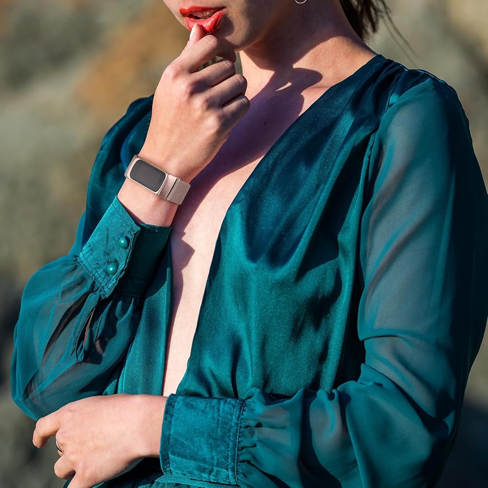 • 【Magnet Clasp Design & Security】The Size for 5.9" -8.6" (150mm-220mm) wrist. Adjustable metal Mesh Stainless Steel Fitbit Charge 5 band with Magnet clasp It's convenient to adjust the band length for your wrist. It's easy to install in seconds without tools. Strong powerful magnetic clasp for closure is firm enough, it will not unconsciously being loose and fall off , that lock your Charge 5 in your wrist all day