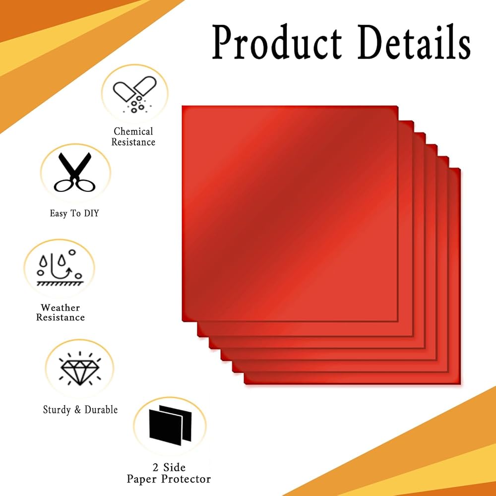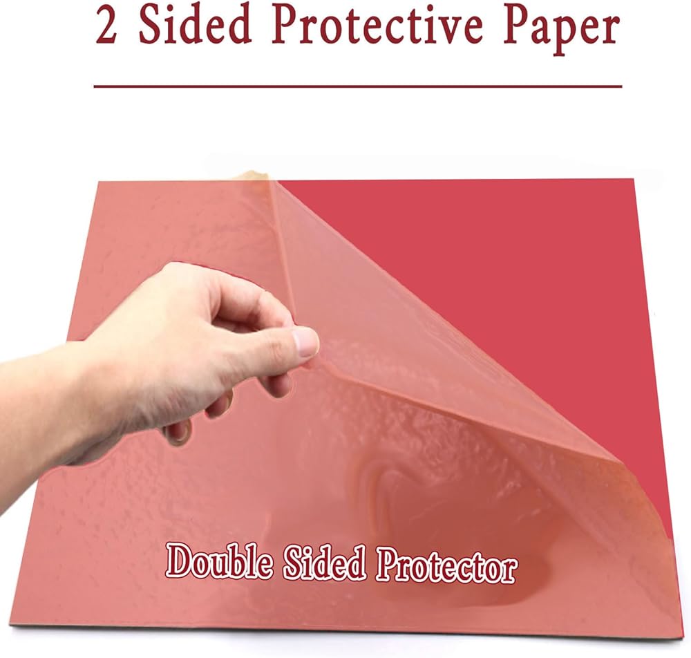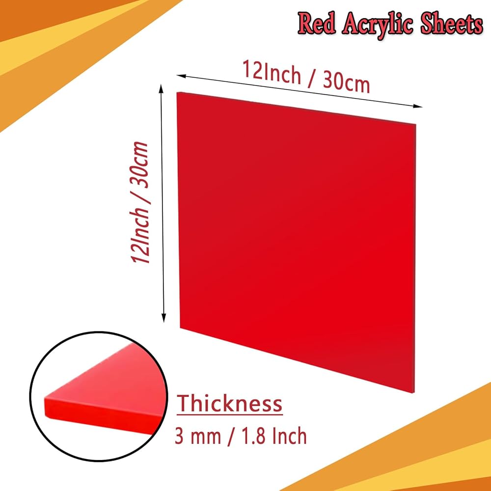 لوح بلاستيكي قوي ومتين: لوح أكريليك أحمر بسمك 1/8 بوصة (3 مم)، مع هيكل صلب ومقاومة عالية للخدش، والتي يمكن أن توفر خدمة دائمة لتزيين المنزل؛ تحتوي كل ورقة أكريليك حمراء اللون على طبقة واقية على الوجهين لمنع الخدوش أثناء النقل؛ يرجى التأكد من تقشيرها قبل الاستخدام