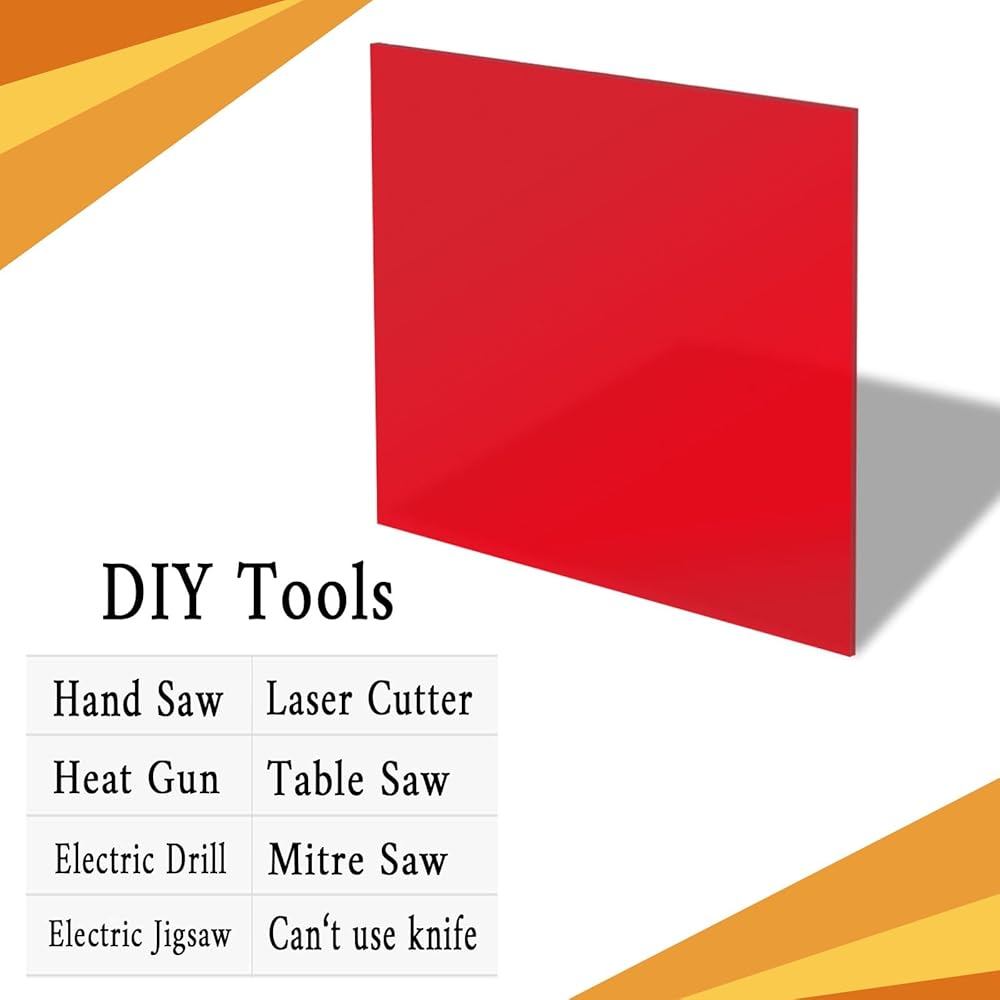 سهلة التشكيل والمعالجة: تتميز ورقة الأكريليك ذات اللون الأحمر مقاس 12 × 12 بوصة (30 سم × 30 سم) بمرونة جيدة وحافة قطع أنيقة ولا يوجد بها نتوءات؛ يمكن قطع ورقة الأكريليك الحمراء المخصصة للقطع بالليزر ونشرها ونقشها بالليزر بسهولة باستخدام أنواع مختلفة من الأدوات، مثل المنشار اليدوي والمثقاب الكهربائي وأحجية الصور المقطوعة وآلة القطع بالليزر ومنشار الطاولة