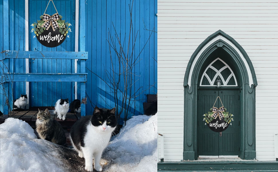 تطبيق واسع - مناسب تمامًا للتعليق على الحائط عند باب الشرفة الأمامي، أو الباب الخلفي، أو غرفة المعيشة، أو غرفة النوم، أو المدخل، أو الرف أو في أي مكان في جميع أنحاء منزلك! حتى يمكن استخدامها في المقهى والمطاعم والمكاتب والأعمال التجارية، ويمكن استخدامها لتزيين المنزل وتحية الضيوف. إكليل الترحيب الريفي الخاص بنا هو أفضل طريقة لإضفاء الحيوية على باب منزلك الأمامي