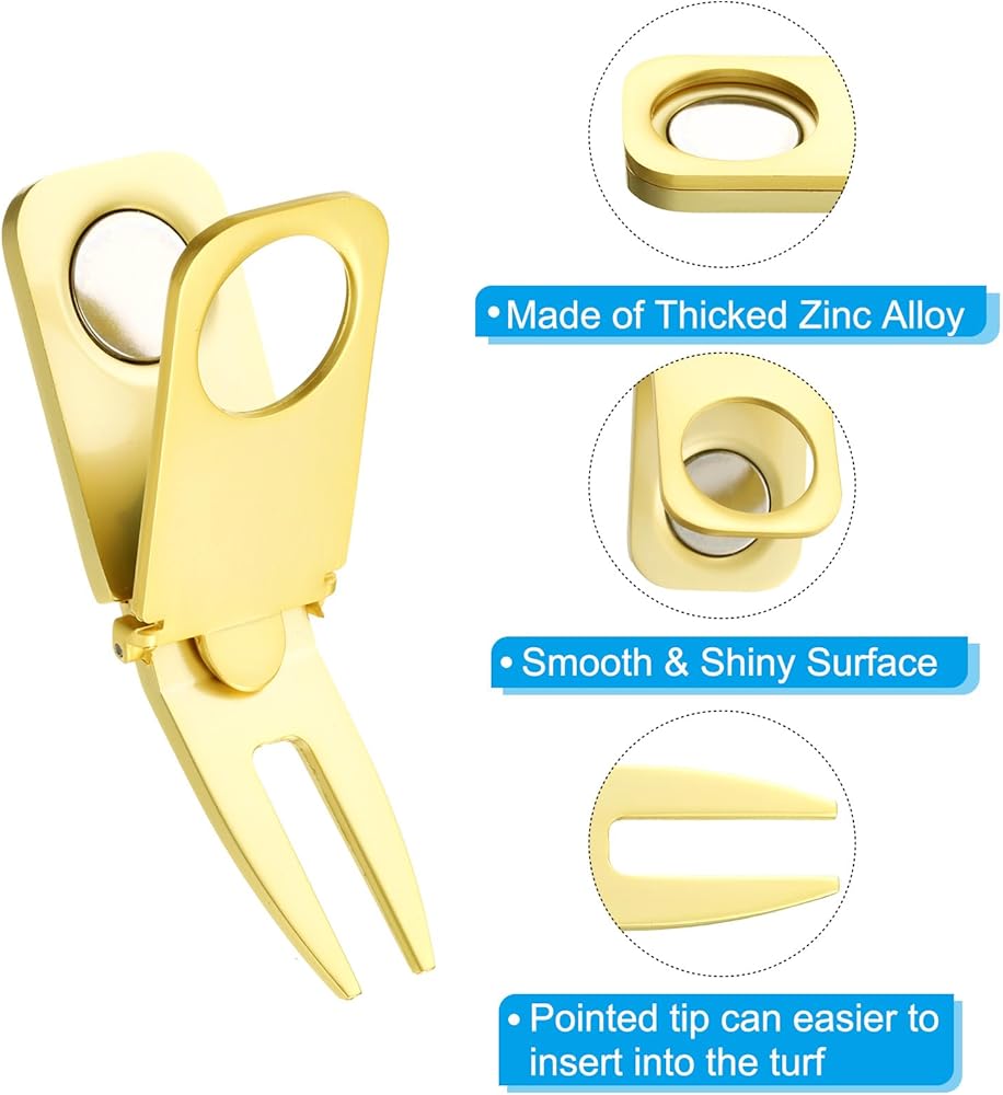The golf green fork is made of zinc alloy with a polished, ensuring strength and durability. Its surface is sleek and metallic, offering a smooth feel. With excellent resistance to breaking, tearing, fading, and deformation, this fork is built to last.