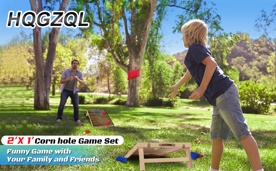 لعبة كورنهول للأطفال والكبار: مجموعة ألعاب الرمي بفتحة الذرة من HQGZQL تتضمن لوحتين و6 أكياس حبوب (3 حمراء و3 زرقاء)، وحقيبة حمل وتعليمات.