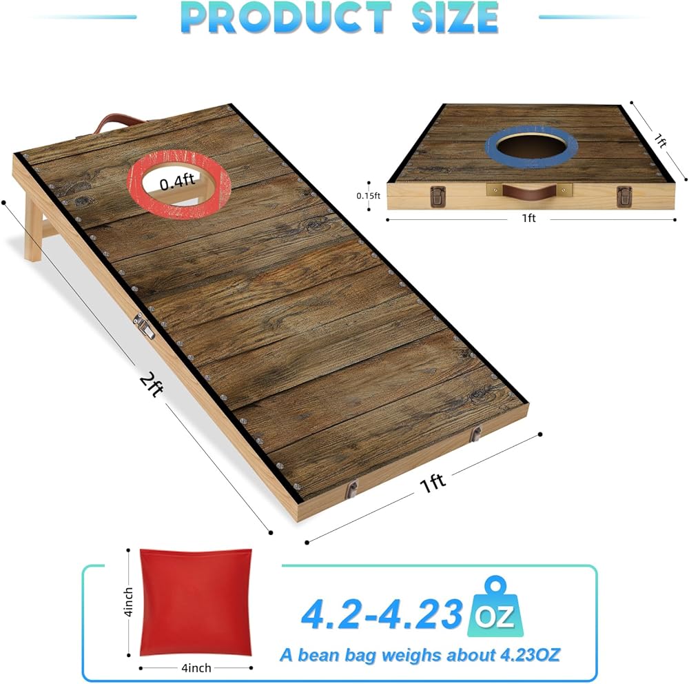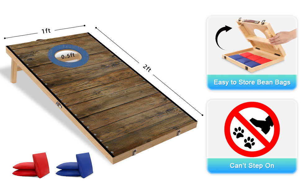 مجموعة فتحات الذرة القابلة للطي: يمكن طي لعبة ثقب الذرة وتثبيتها بسهولة في مكانها. الوظيفة القابلة للطي مناسبة للتخزين والنقل ولا تشغل مساحة.