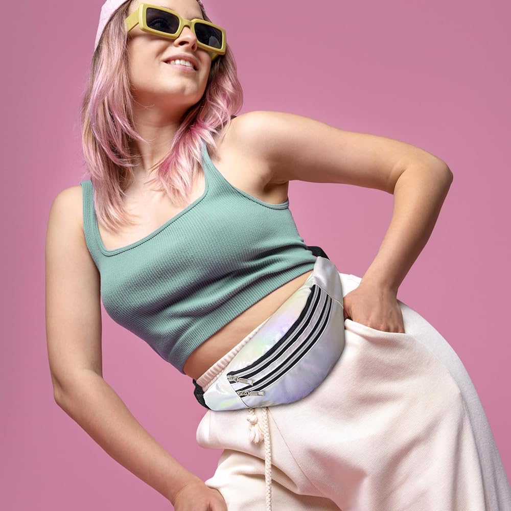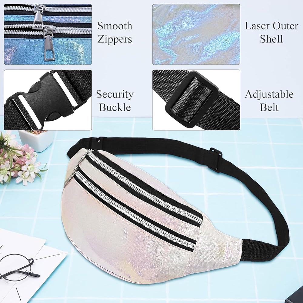 Holographic Design: The cool and fashionable holographic belt bag adopts holographic laser design, presenting various beautiful colors under the light. It is very charming, making you look more fashionable and always the focus