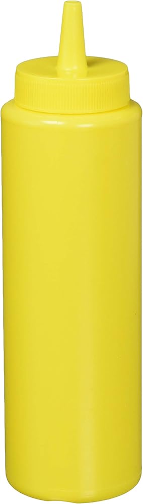 8oz yellow color condiment squeeze bottle. Open tip no need to cut , very easy to squeeze for ant age. No leak cap prevents messes spills. Perfect for holding condiments at home, restaurant , or self serve areas.
