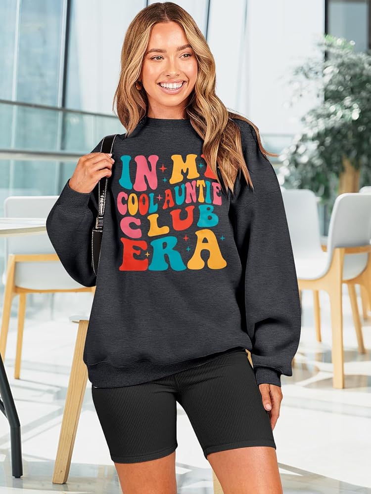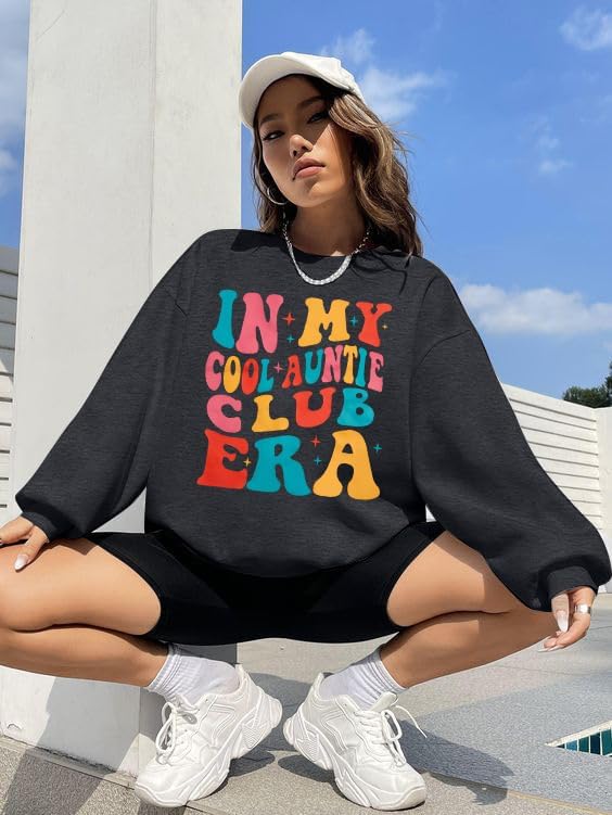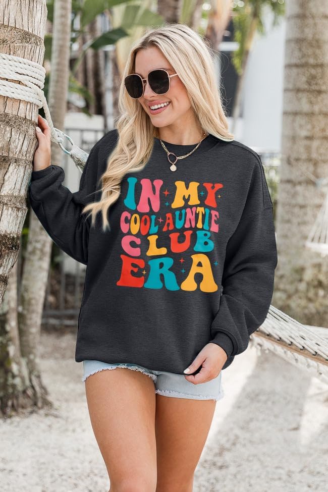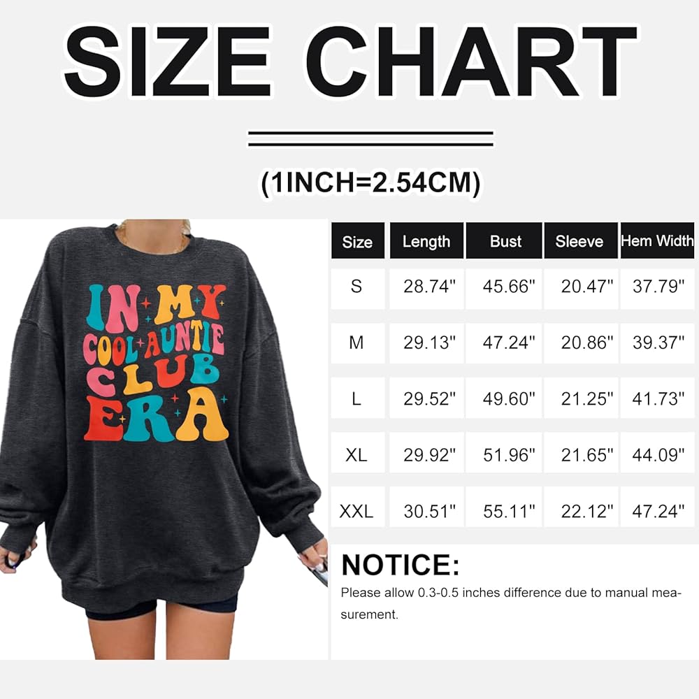 المزايا: سويت شيرت Anutie، سويت شيرت عمة كبير الحجم، في سترة My Cool Auntie Club Era، قميص برسوم مضحكة، قميص مطبوع عليه حروف ملونة، سويت شيرت رائع العمة، قميص فضفاض مناسب كهدية العمة، قمصان كبيرة الحجم بأكمام طويلة، قميص كلاسيكي بأكمام طويلة، رقبة مستديرة كلاسيكية، بلوفر كاجوال ، قميص نادي العمات الرائع، سويت شيرت أزياء العمة، سويت شيرت حياة العمة