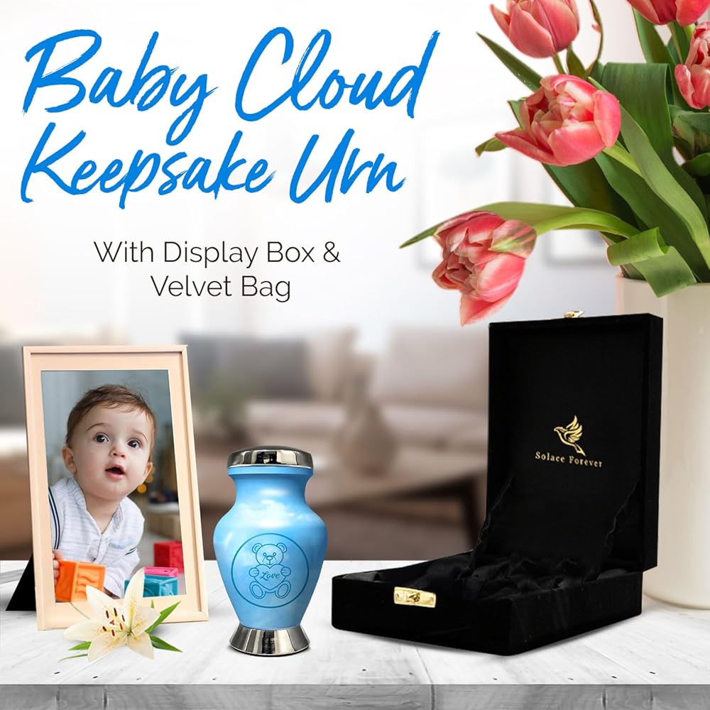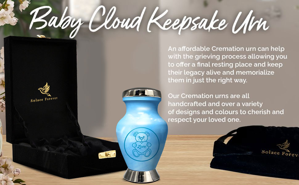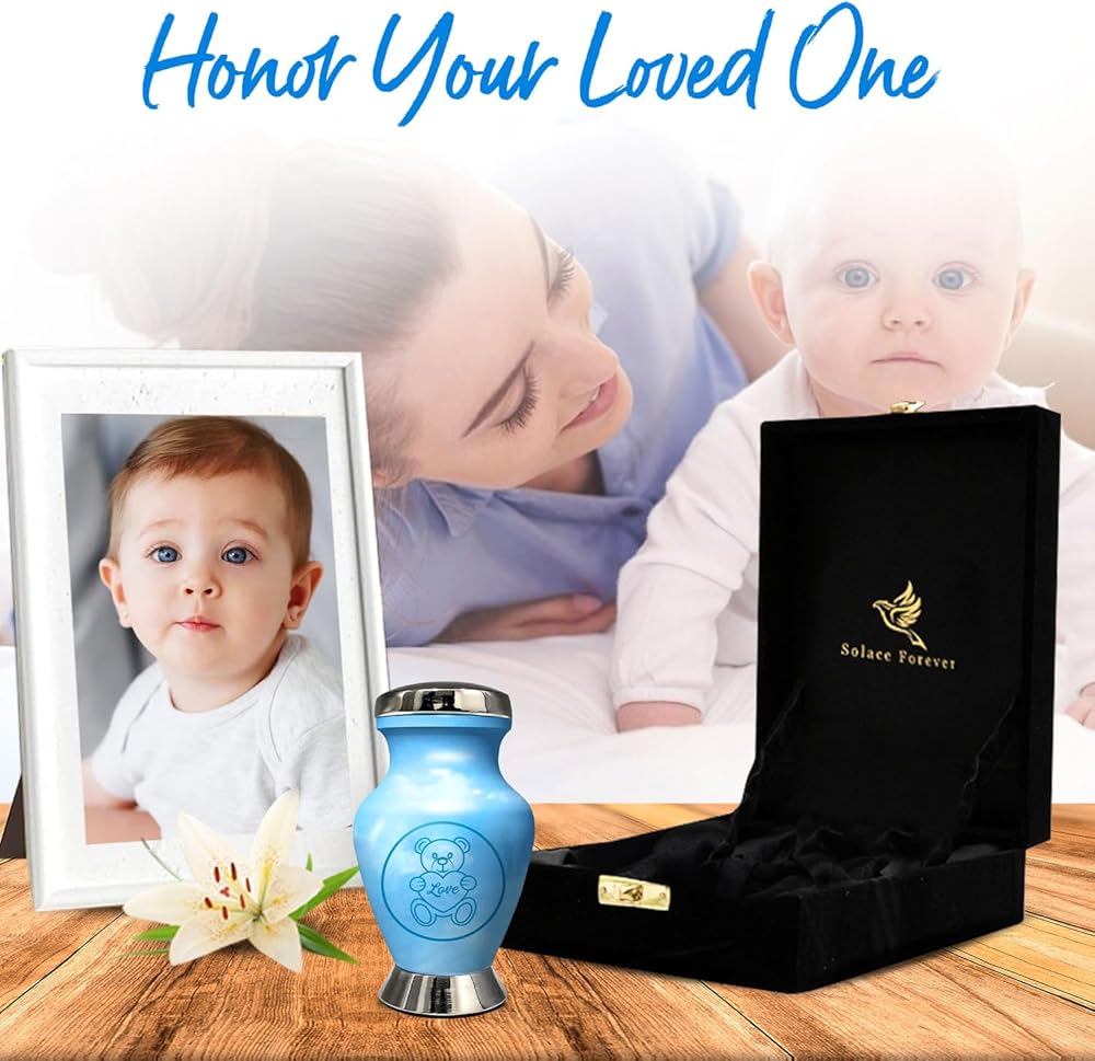 جرة تذكارية مصنوعة يدويًا للطفل الرضيع: تم تصنيع جرة الرضيع لرماد الطفل الرضيع يدويًا لتقديم المنتج الأكثر تميزًا. هذه الجرة الفريدة من نوعها للرماد للطفل الرضيع سوف تعتز بعلاقتك الخاصة مع أحبائك. الجرة التذكارية الزرقاء مصنوعة يدويًا، يمكن أن تحدث عيوب/اختلافات صغيرة وهي جزء من جودة المنتج المصنوع يدويًا.
