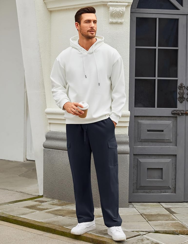 • Versatile Match - The men's baggy construction pants can be easily matched with a T-shirt and a white shoes to complete your fashion look. Sweatshirts, hoodies or denim jackets with our mens casaul sweatpants are also great combinations.