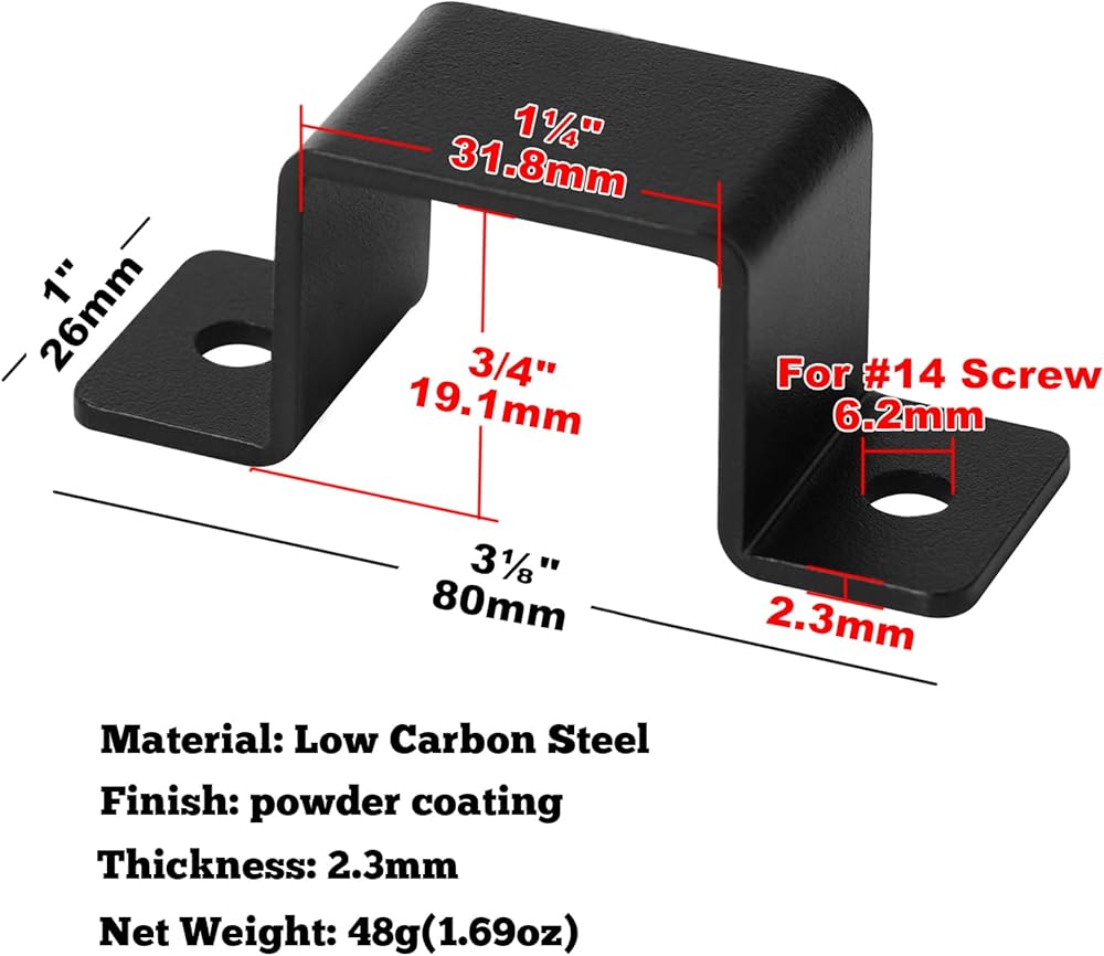 20 قطعة 1-1/4 بوصة × 3/4 بوصة مشبك حزام أنبوبي مستطيل مربع، أسود على شكل حرف U مربع أنبوب قوس المشبك سمك 2.3 مم، الحجم الداخلي: 31.8 × 19.1 مم