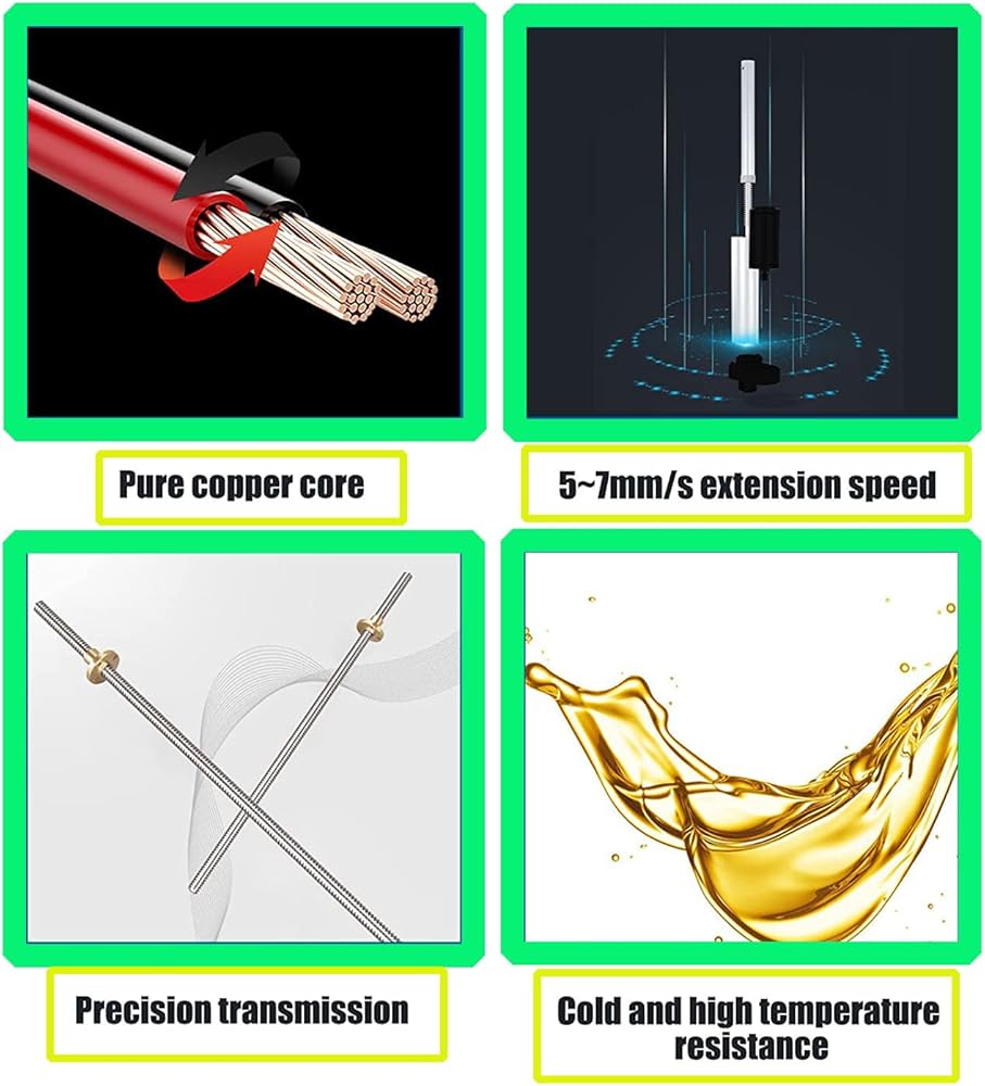 جودة عالية: مشغلات الحركة الخطية ذات الأداء الموثوق، والتشغيل المستقر والحساس، ونفس خصائص الدفع والسحب والقدرة على التكيف مع البيئة الجيدة وما إلى ذلك. مادة معدنية عالية الجودة، ومحرك عالي الأداء، ومفتاح شوط مدمج. ترس بلاستيكي: ناقل حركة سلس، مقاوم للتآكل، عزم دوران عالي. قلب نحاسي نقي: تسخين منخفض، عمر خدمة طويل وأداء أكثر استقرارًا
