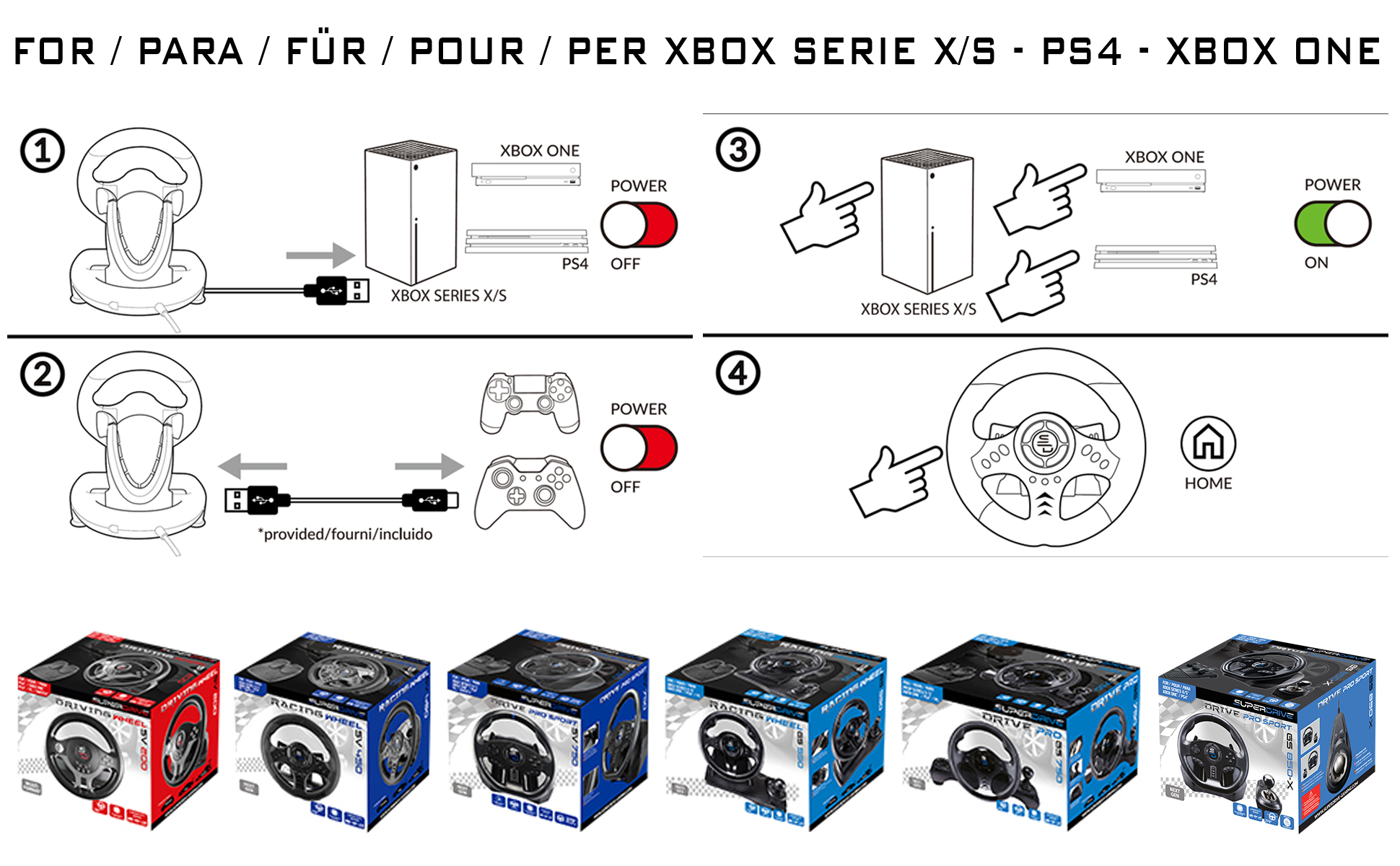 قابل للبرمجة بالكامل، متوافق مع جميع ألعاب السباق (غران تورزمو سبورت، فورزا موتور سبورت 7، فورزا هورايزون، بروجيكت كارز 2، F1 2020، نيد فور سبيد وأوساخ، WRC، شريد، V رالي 4، جير كلوب 2، جي تي ايه في...)