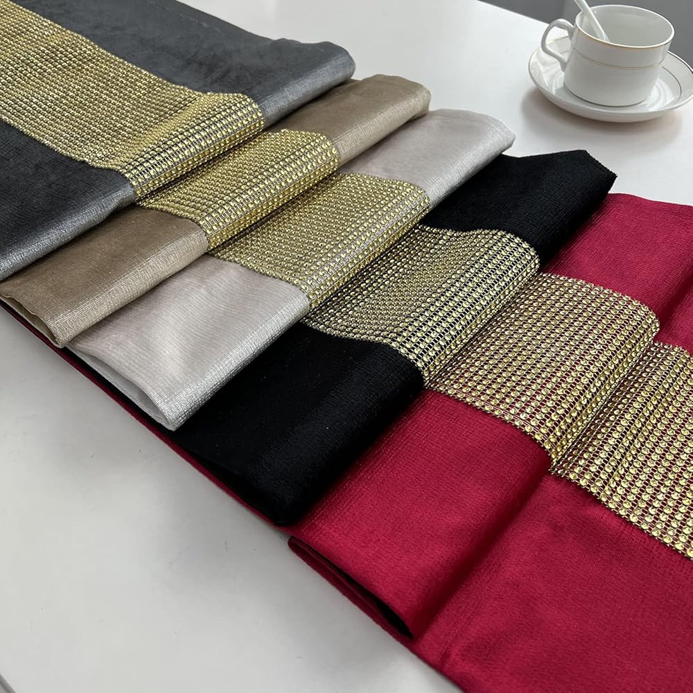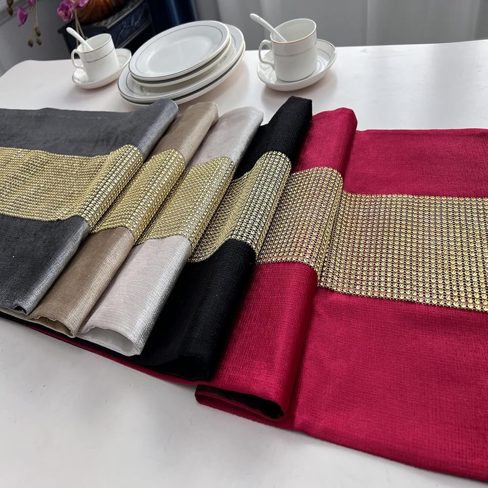 • Material:Elegant table runner is made of thick velvet fabric with delicate sequined which sparkling like rhinestone. The back is polyester fabric.