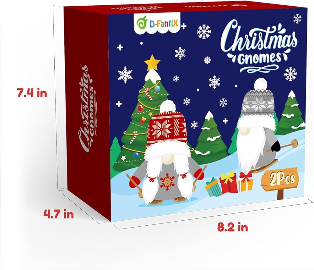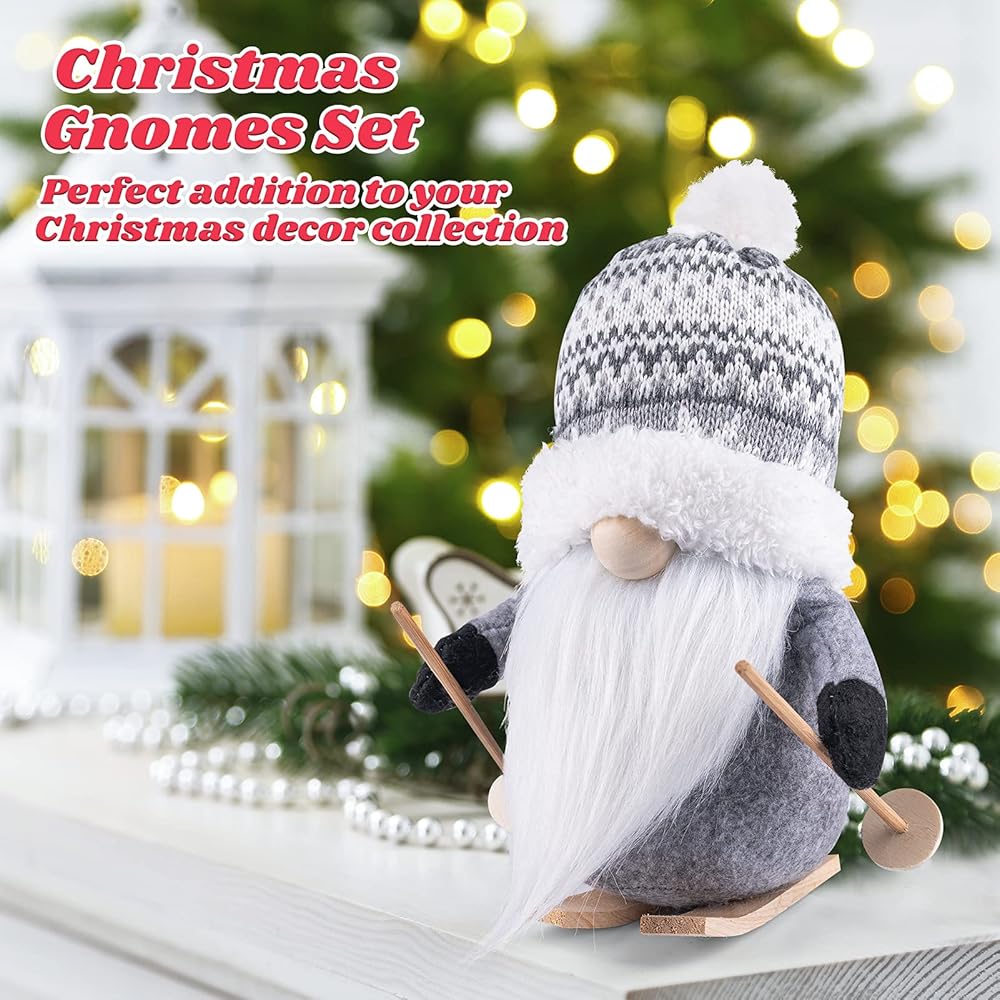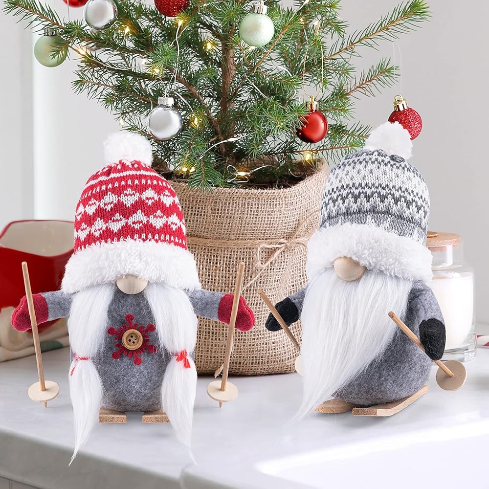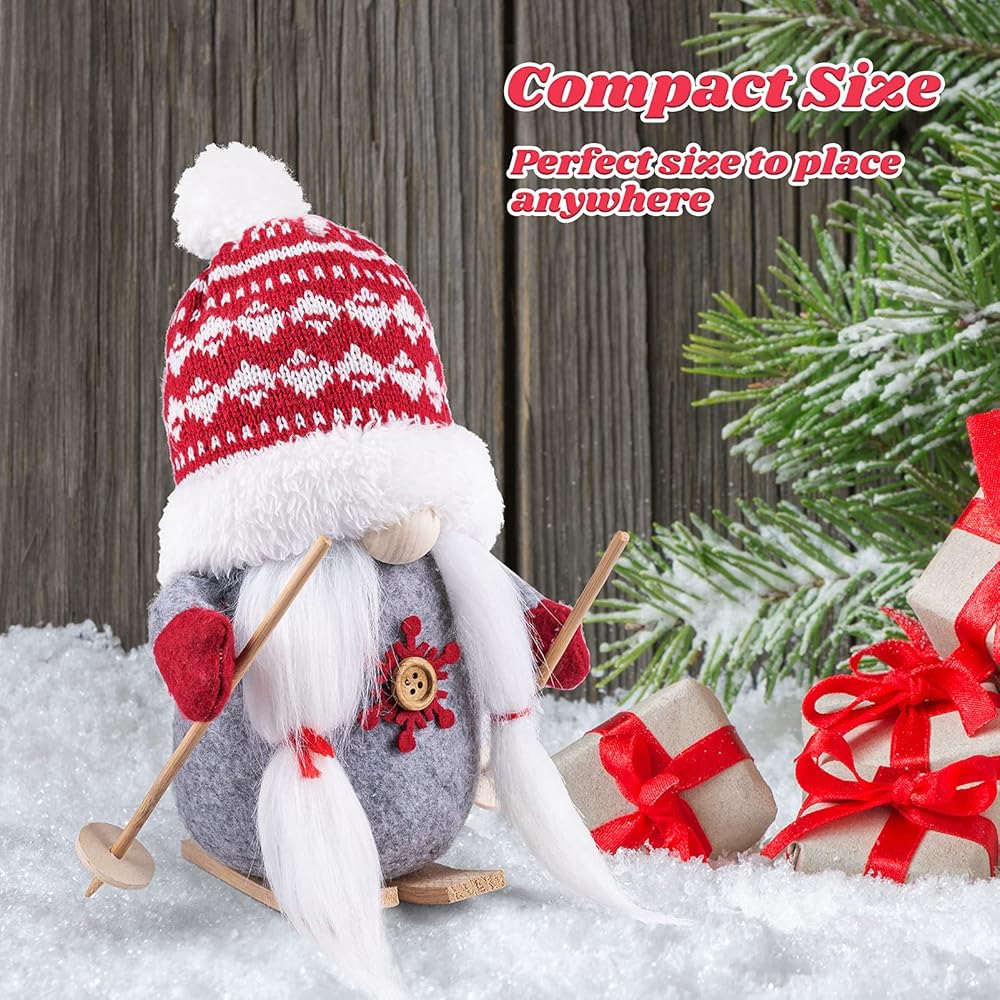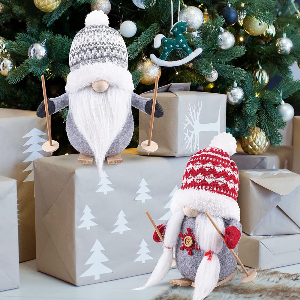 D-FantiX 2pack زلاجات عيد الميلاد التماثيل القطيفة مع الزلاجات الخشبية وأعمدة التزلج، اليدوية السويدية Tomte سانتا الاسكندنافية تمثال الشمال أفخم قزم دمية جنوم الحلي زينة عيد الميلاد ديكور المنزل