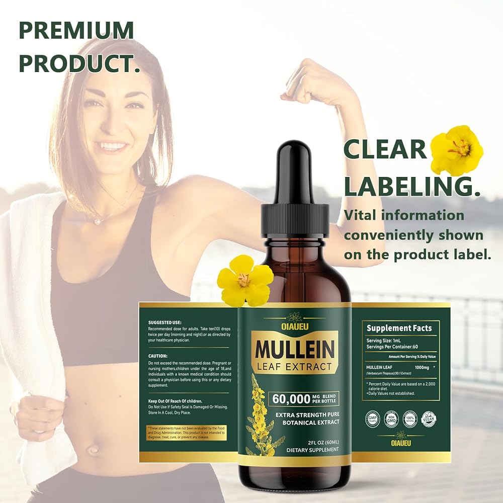 • تعزز التنفس الصحي: تم تصميم قطرات المولين الخاصة بنا خصيصًا للمساعدة في إطلاق تراكم المخاط وتهدئة وتغذية الجهاز التنفسي، مما يساعد في الحفاظ على الممرات الهوائية المفتوحة ووظيفة الرئة المثالية. يعتبر مستخلص أوراق مولين حلاً طبيعيًا للحفاظ على صحة الجهاز التنفسي القوية.