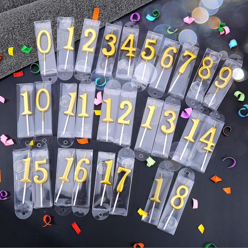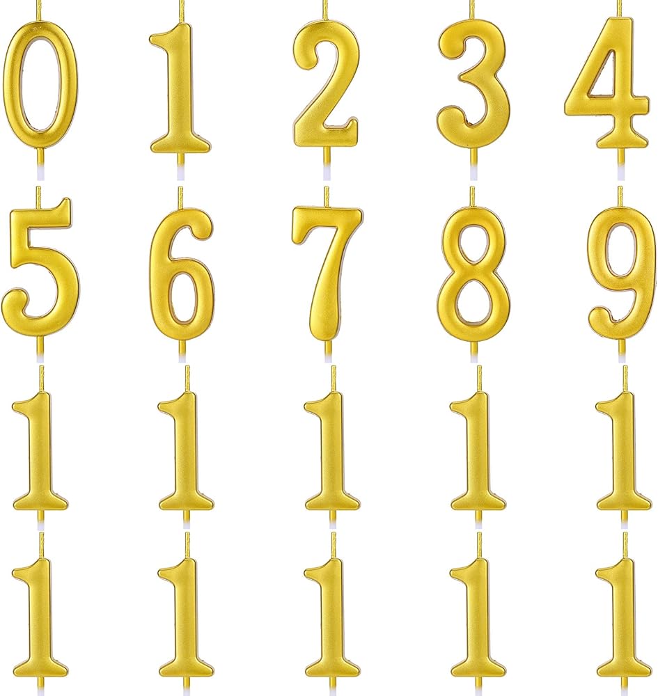 20 PCS Gold Number Birthday Candles 1st 10-19th Birthday Cake Candles Tropper Decoration Number 0-9 Cake for Birthday Wedding Anniversary Party Celebration