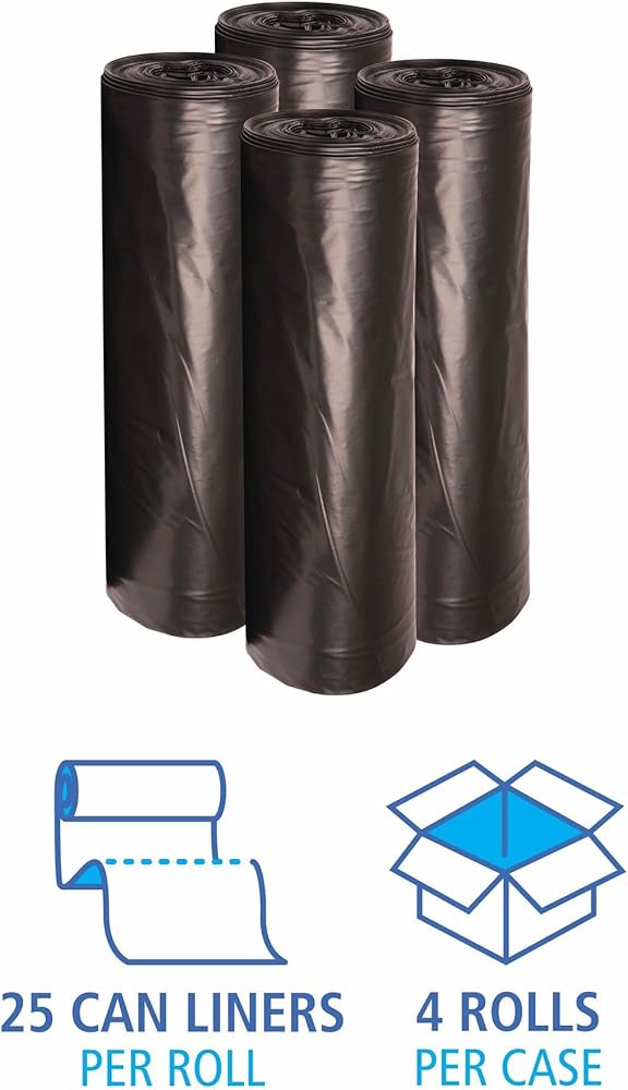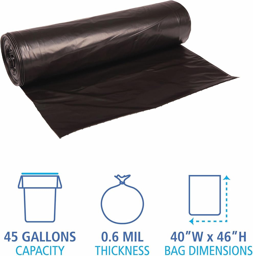 Boardwalk H8046HKKR01 منخفض الكثافة 45 جالون 0.6 مل 40 بوصة × 46 بوصة بطانات علب النفايات - أسود (25 كيسًا/لفة، 4 لفات/كرتون)