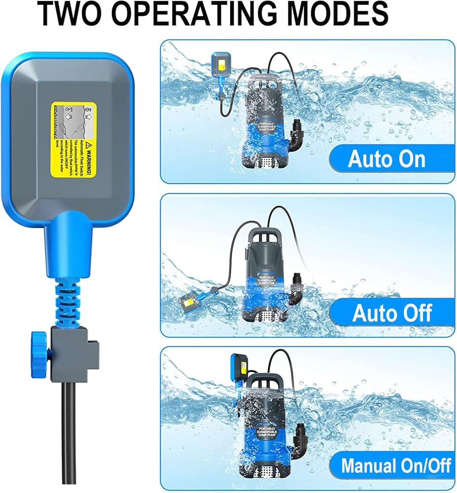 - Durable Submersible Pump: Fully corrosion-resistant casing and thermoplastic construction ensure the stability and service of the sump pump