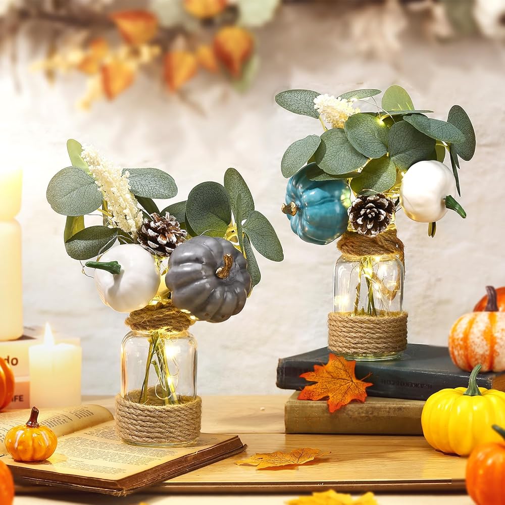 2 x Eucalyptus leaf decoration (contains 4 pumpkins, several berries, and several eucalyptus leaves)