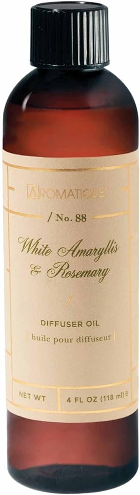 White Amaryllis & Rosemary - fragrant herbs and ginger topped with white florals, all embraced by notes of earthy oakmoss. Enjoy fresh notes of lemon, rosemary and ginger, paired with the gentle florals of white amaryllis and jasmine, and grounded in oak moss and cardamom. Refresh and refill your Aromatique Reed Diffuser or your favorite reed diffuser container with convenient bottle refill. Pair with other products from Aromatique's White Amaryllis & Rosemary collection for an immersive experience. Handcrafted in Heber Springs, Arkansas, USA.