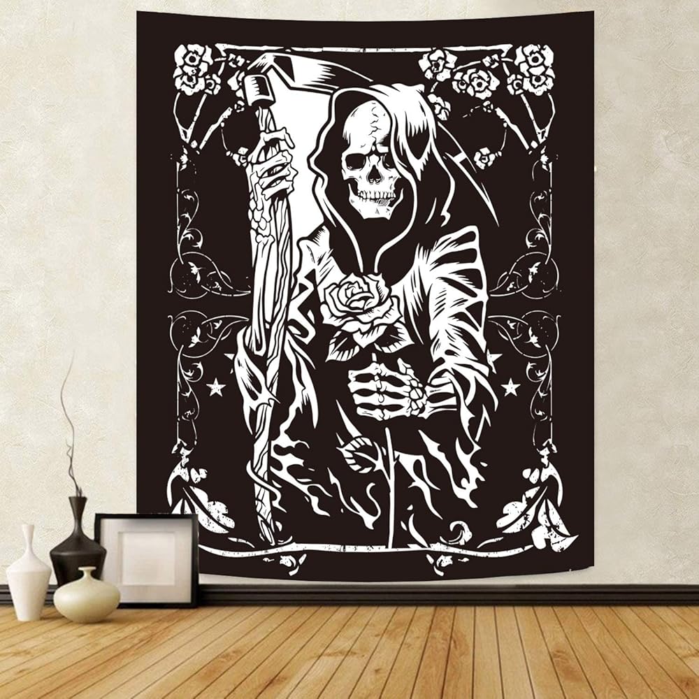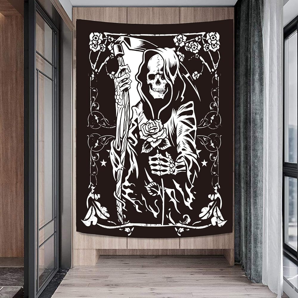 Design Story: This skull tapestry It combines with grim reaper, Plant floral,black rose elements, brings a mysterious atmosphere. HD Printing Technology: This skeleton tapestry adopts HD printing technology. It has crisp lines, vivid patterns, combines with grim reaper, black rose elements, it will show a cool effects for your room. High Quality: This death tarot tapestry is made from polyester fabric,silky smoother than cloth, but is not cloth, it is durable、lighter 、thinner and odorless.which is skin-friendly, fadeless. Size Information: 50” x 60”/130cm x 150cm Suitable for your room decoration. Easy Hang & Care: You can hang this black and white tapestry with push pins or decorative tacks easily. Hand wash or machine washable in cold water, iron it at lower temperature. Multifunction: The grim reaper tapestry can be used for bedroom, dorm room decoration, outdoor activities or as a good gift for family and friends. Package Include: 1 × Black Skull Tapestry Warm Notice: Please allow a little color difference because of computer display and light. 1-2 cm/0.4”-0.8” deviations is allowed by manual measurement.