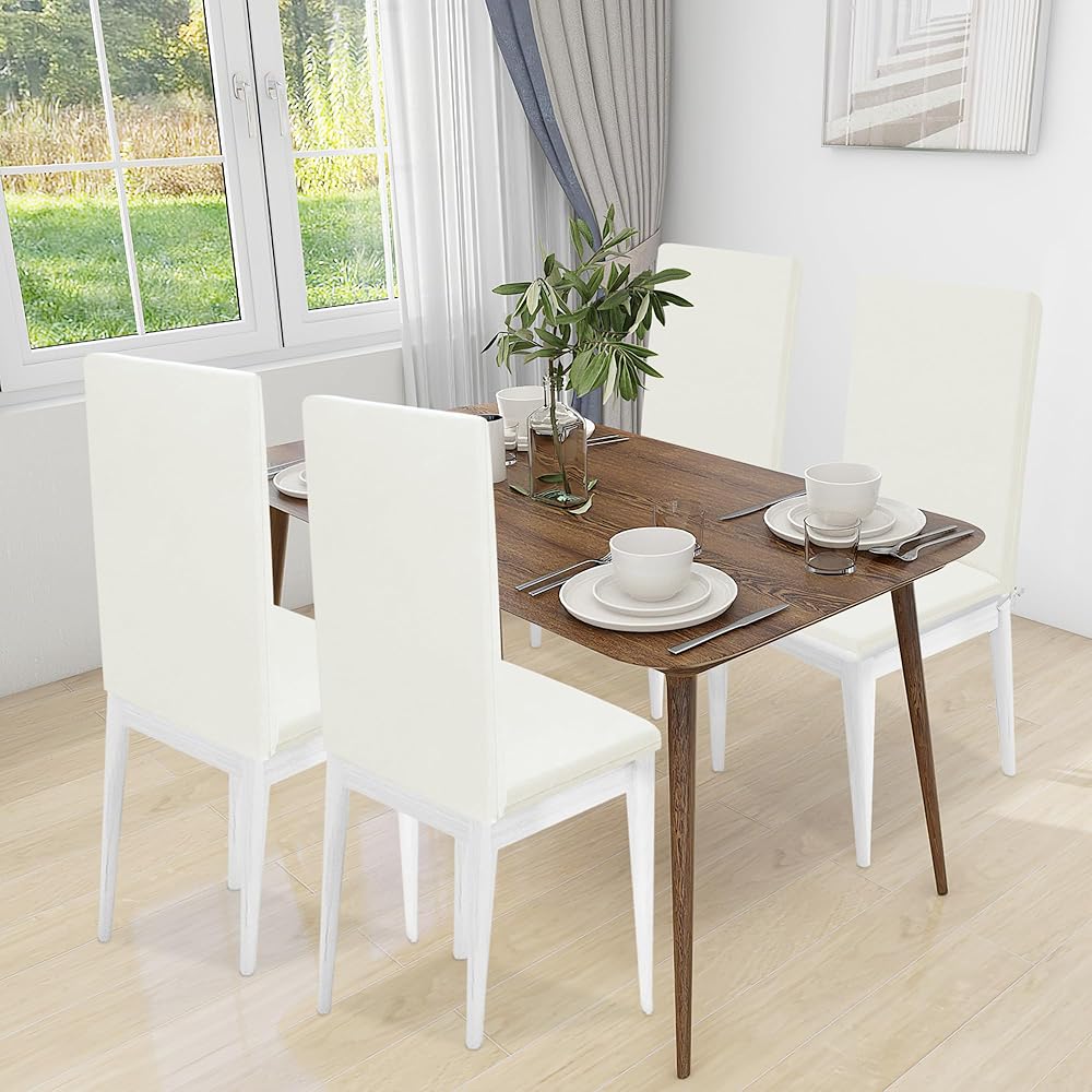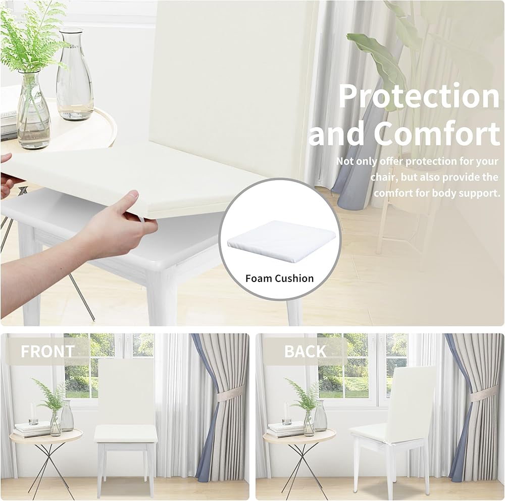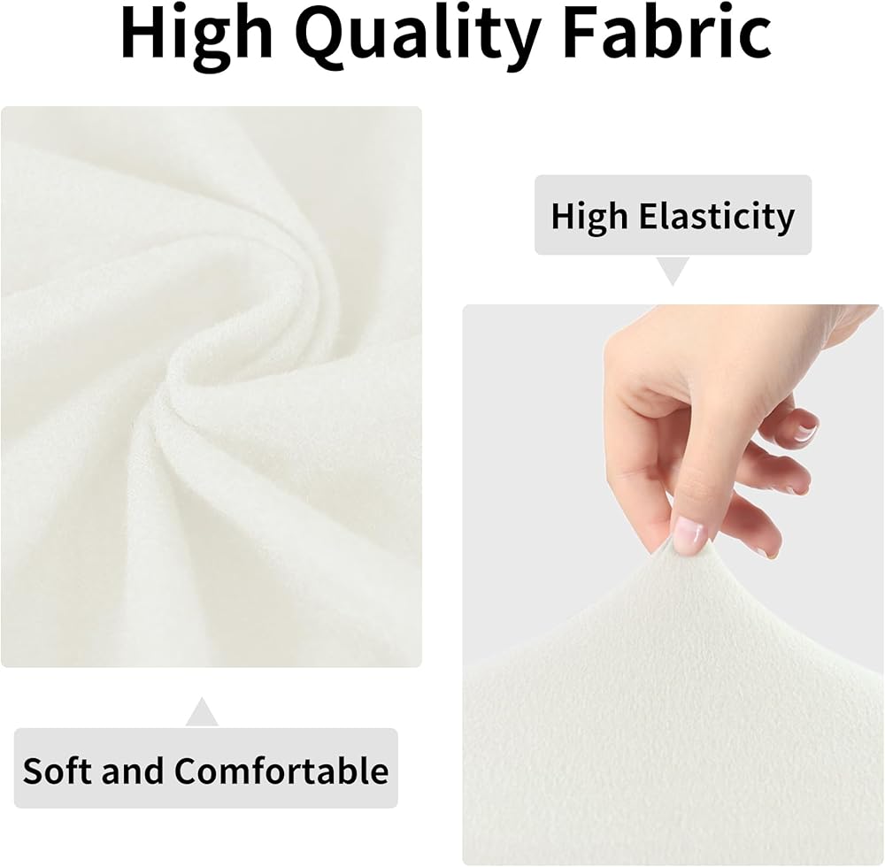 نسيج عالي الجودة: غطاء كرسي الطعام مصنوع من نسيج مرن عالي، مادة ناعمة، مريح ومقاوم للتجاعيد، لا يحول كرسي الطعام الخاص بك إلى كرسي جديد فحسب، بل يحميه أيضًا من البقع والسوائل المنسكبة والتمزق اليومي والتآكل.