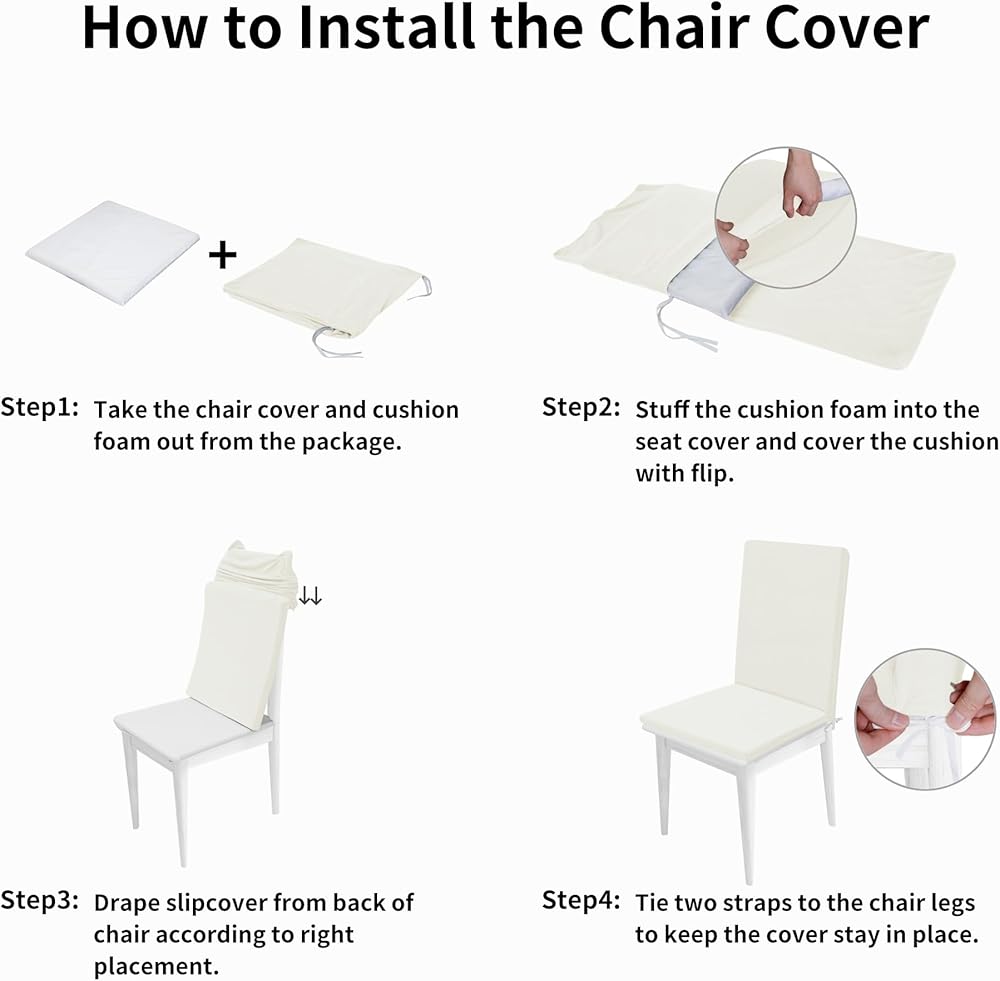 تشتمل العبوة على: تحتوي كل عبوة على غطاءين لكراسي الطعام ووسائد مقعد من الإسفنج الذي يتشكل حسب الجسم الملامس. مناسب لارتفاع ظهر الكرسي 20"-23" والعرض 16"-18"، وعرض المقعد وطوله 15"-16". يمكن إزالة الوسادة الإسفنجية.