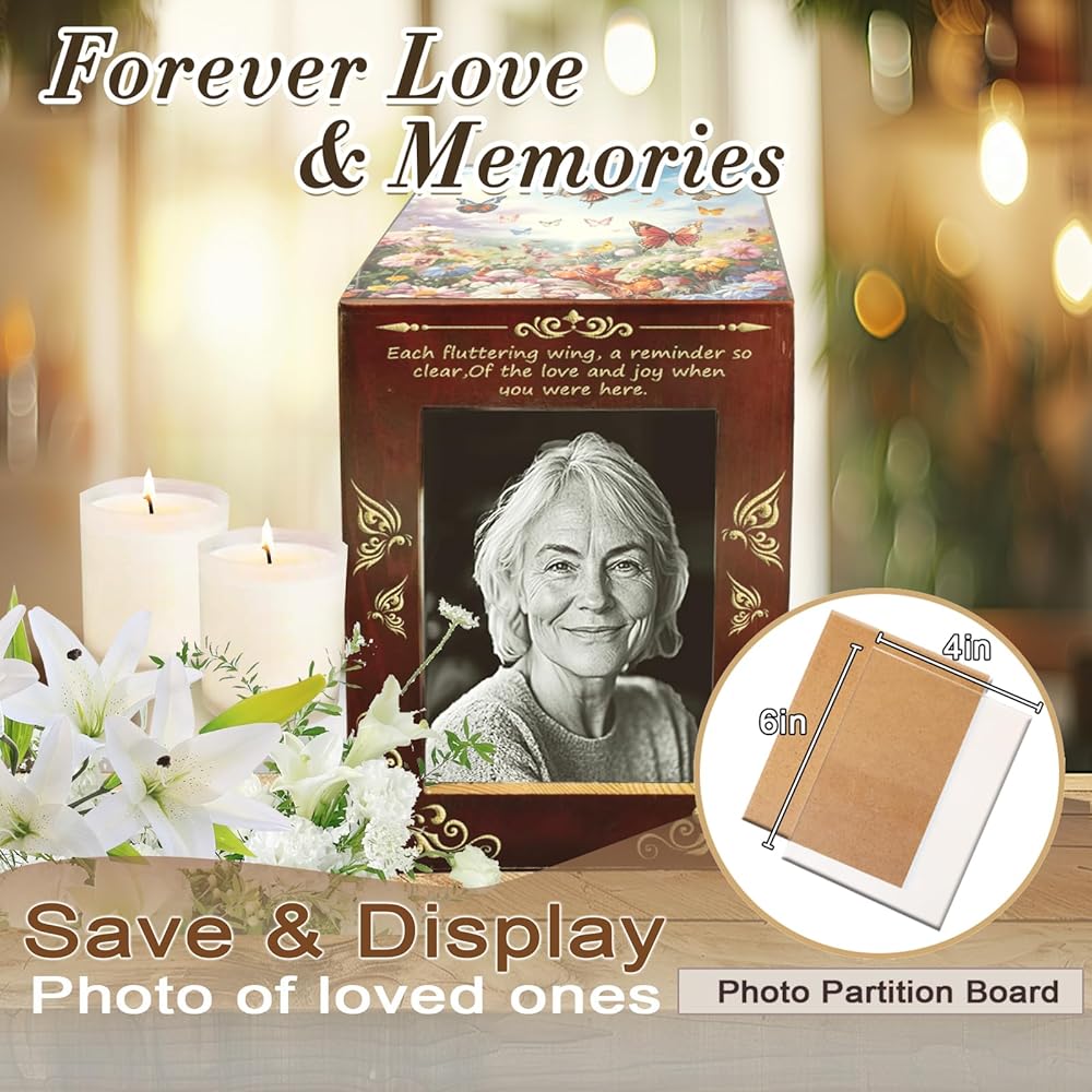 【حجم جرة الحرق】 أبعاد إطار الصورة الخشبي الخارجية هي 6.29 × 5.66 × 9.48 بوصة، والأبعاد الداخلية 5.5 × 8.5 × 5 بوصة. تحتوي جرار الرماد على مساحة كافية لأشياءك الثمينة. إن جرة حرق الجثث مناسبة للأفراد والعائلات الذين يرغبون في تكريم أحبائهم بطريقة كريمة ومحترمة. يمكن لجرار إطار الصورة الخشبي أن توفر مكانًا هادئًا للراحة لرماد أحبائك.