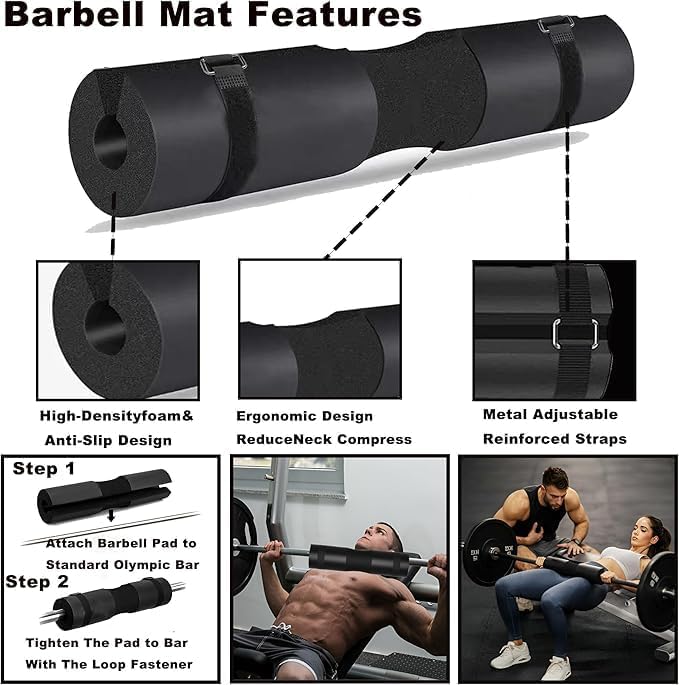 【تصميم أخدود مريح】: إكسسوارات صالة الألعاب الرياضية للسيدات من وسادة الأثقال مصنوعة من إسفنج مطاطي عالي الكثافة ومُحدث وسميك، بسمك يصل إلى 1.3 سم، والذي يناسب أخاديد الكتفين والرقبة لتخفيف الضغط والانزعاج، ويمنع أي إزعاج. عند أداء دفعات الورك أو القرفصاء الخلفي، ويحمي العمود الفقري العنقي. مع 2 أبازيم أمان، يمكنها منع السقوط والانزلاق بشكل فعال، ويمكن أن تصل سعة الحمل إلى حوالي 400 كجم، مما يجعل التمرين أكثر كفاءة.