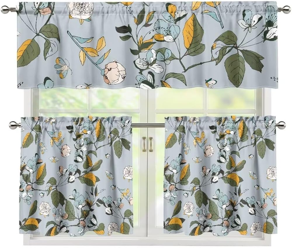 Size: Our curtain sets are available in size S and M. S: One Valance (53.9x17.7 inches), and two Tier Panels of the same size (27.5x24 inches); M: One Valance (53.9x17.7 inches) and two Tier Panels are the same size (27.5x35.8 inches).Perfect size for most living rooms and bedrooms