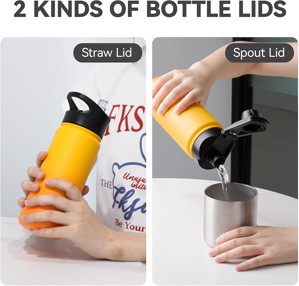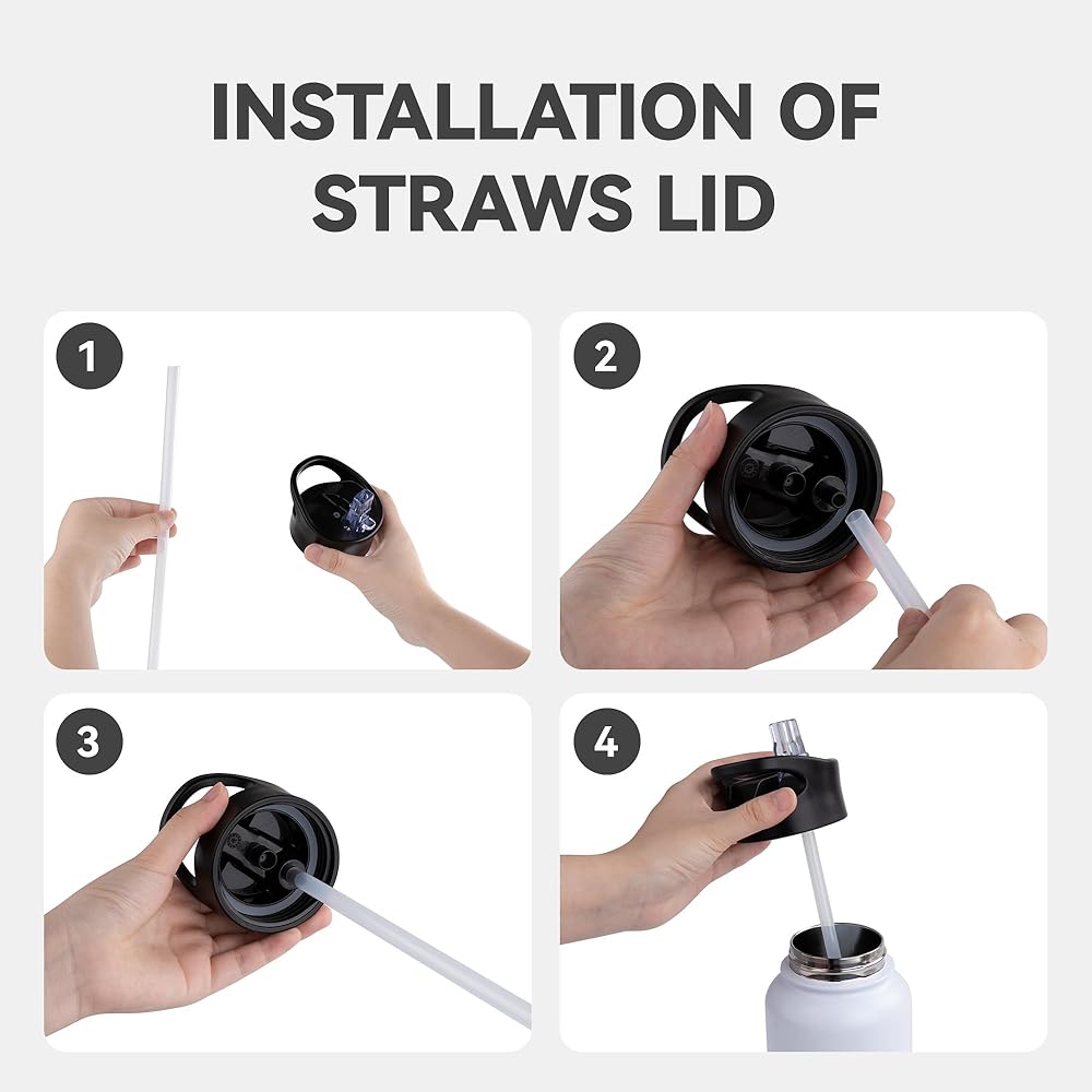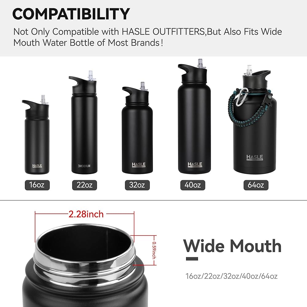 【COMPATIBILITY】: Lid fits most brands of 2.28 inch opening WIDE MOUTH water bottles as 16oz, 22oz, 32oz, 40oz and 64oz. NOTE: Please confirm the mouth inner diameter and thread height of the water bottle before purchase ( 2.28“Inner diameter,0.59" Thread height ).