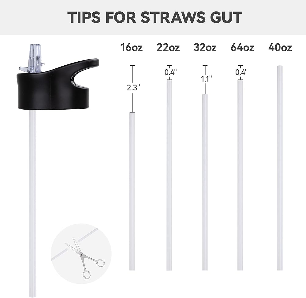 【PERFECT FIT】: Long straws allow you to trim straws a bit. Straws fits 40 oz perfectly,trim straw a bit to fit 32 oz or other wide mouth water bottles.