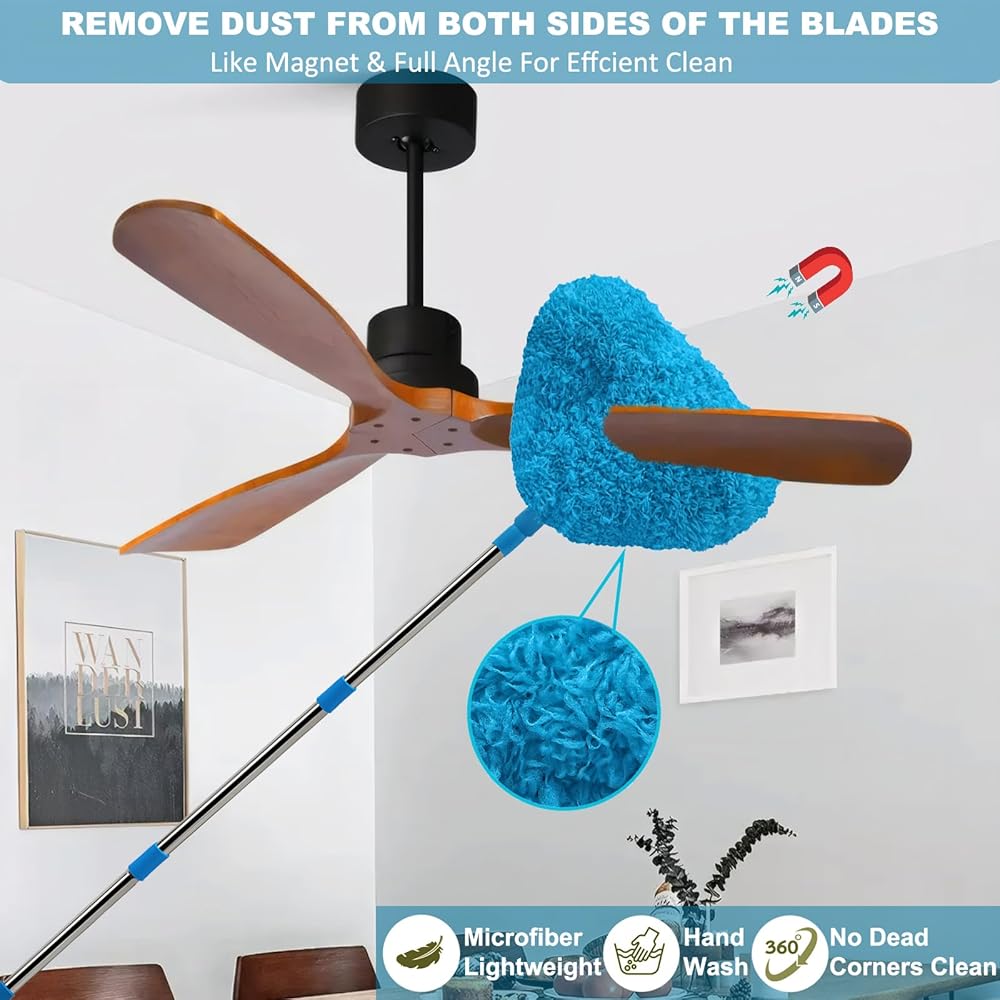 Microfiber Fan Duster Head: Made of thousands of microfibers that act like a magnet to attract dust, this fan duster has a hole in the middle designed for cleaning fans to easily clean fan blades. Say goodbye to dust on fans, chandeliers, sofas, tables and shelves to ensure a sparkling clean environment.