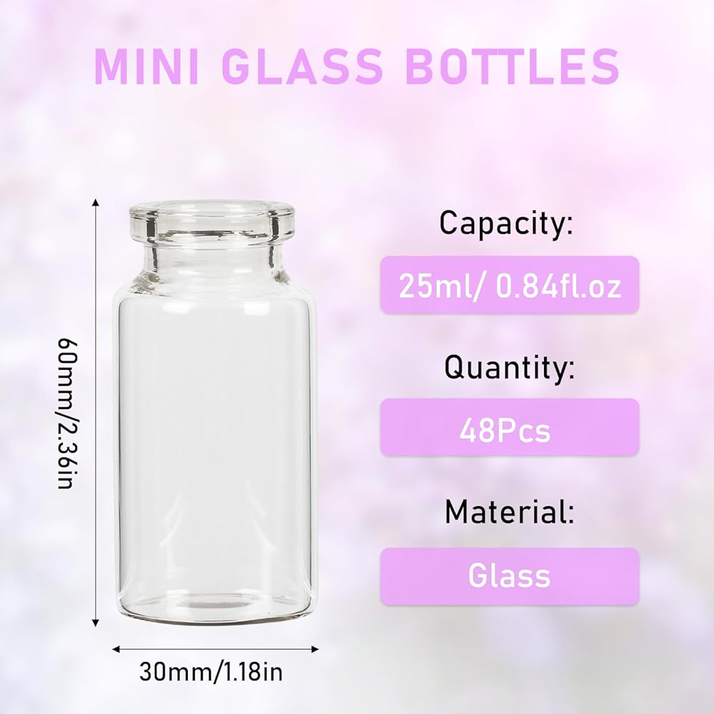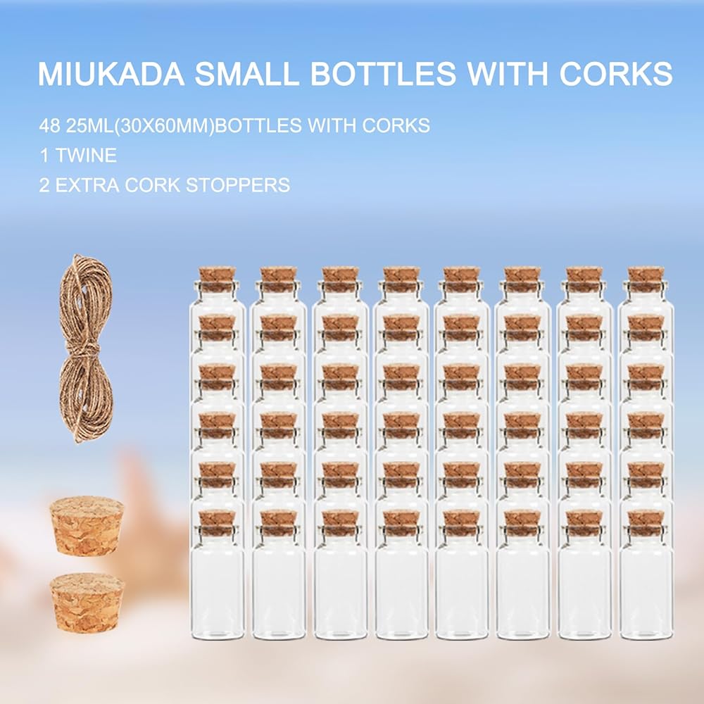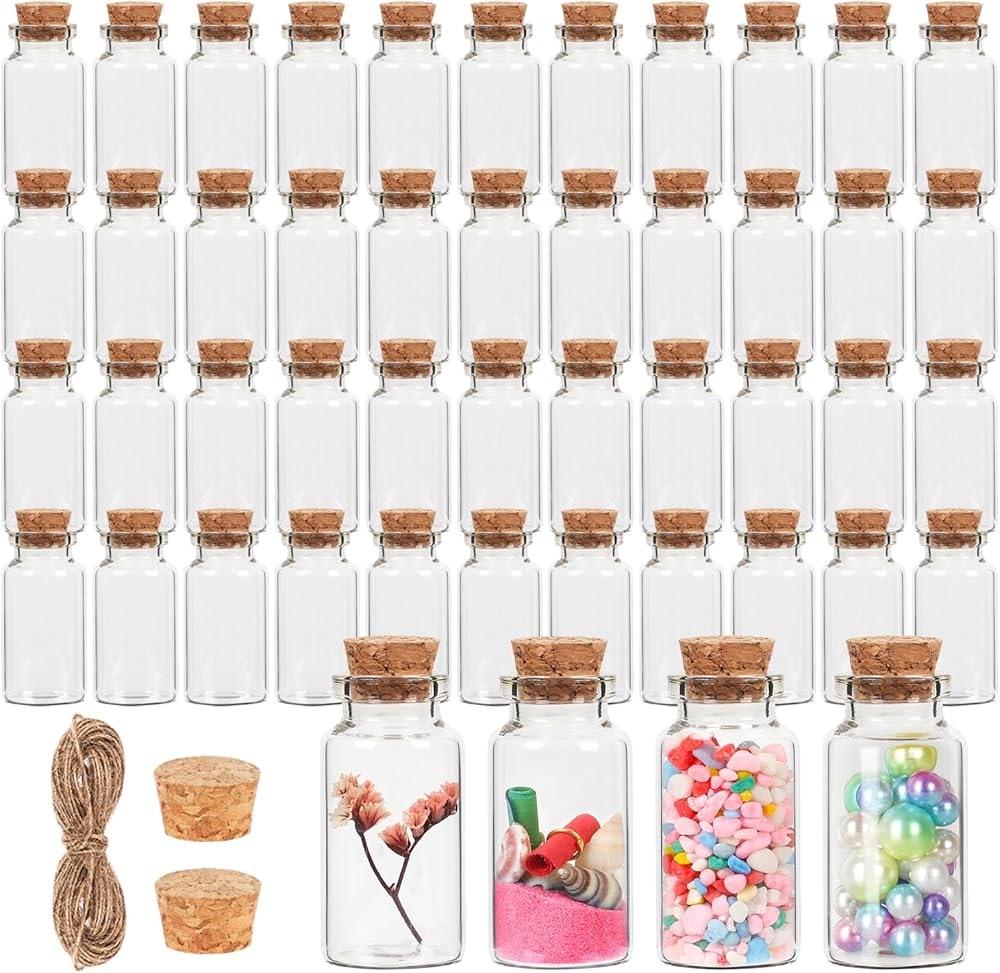 زجاجات زجاجية صغيرة سعة 25 مل مع فلين، 48 عبوة زجاجات صغيرة مع سدادات فلين وخيوط إضافية، قوارير صغيرة بأغطية، برطمانات تعويذة صغيرة، زجاجات جرعة صغيرة لصالح الحفلات، الرمل، الحرف اليدوية