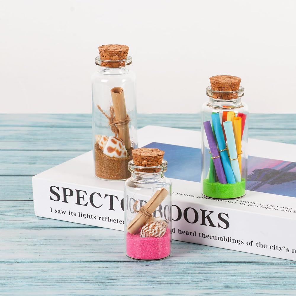 • برطمانات مثالية متعددة الاستخدامات: يمكن للزجاجات الزجاجية الصغيرة المزودة بالفلين أن تحتوي على الزيوت العطرية والرمل والحروف والعطور؛ يمكنك استخدام الزجاجات الصغيرة لإبداعاتك الفنية؛ يمكنك الطلاء على الزجاجات الصغيرة، أو ملء بعض الخرزات بشكل جميل جدًا