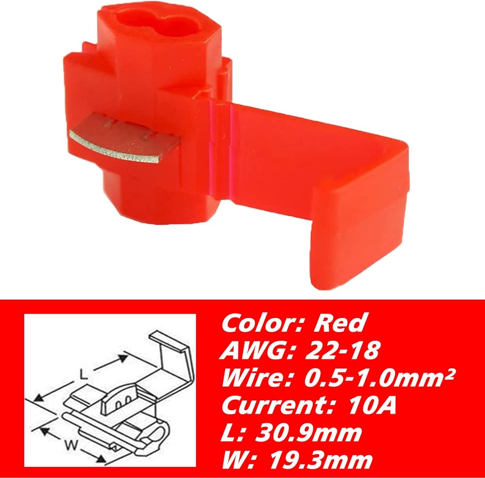 Red connectors let you organize installations and correctly identify wire sizes (0.5-1.0mm²) with max. current 10A.