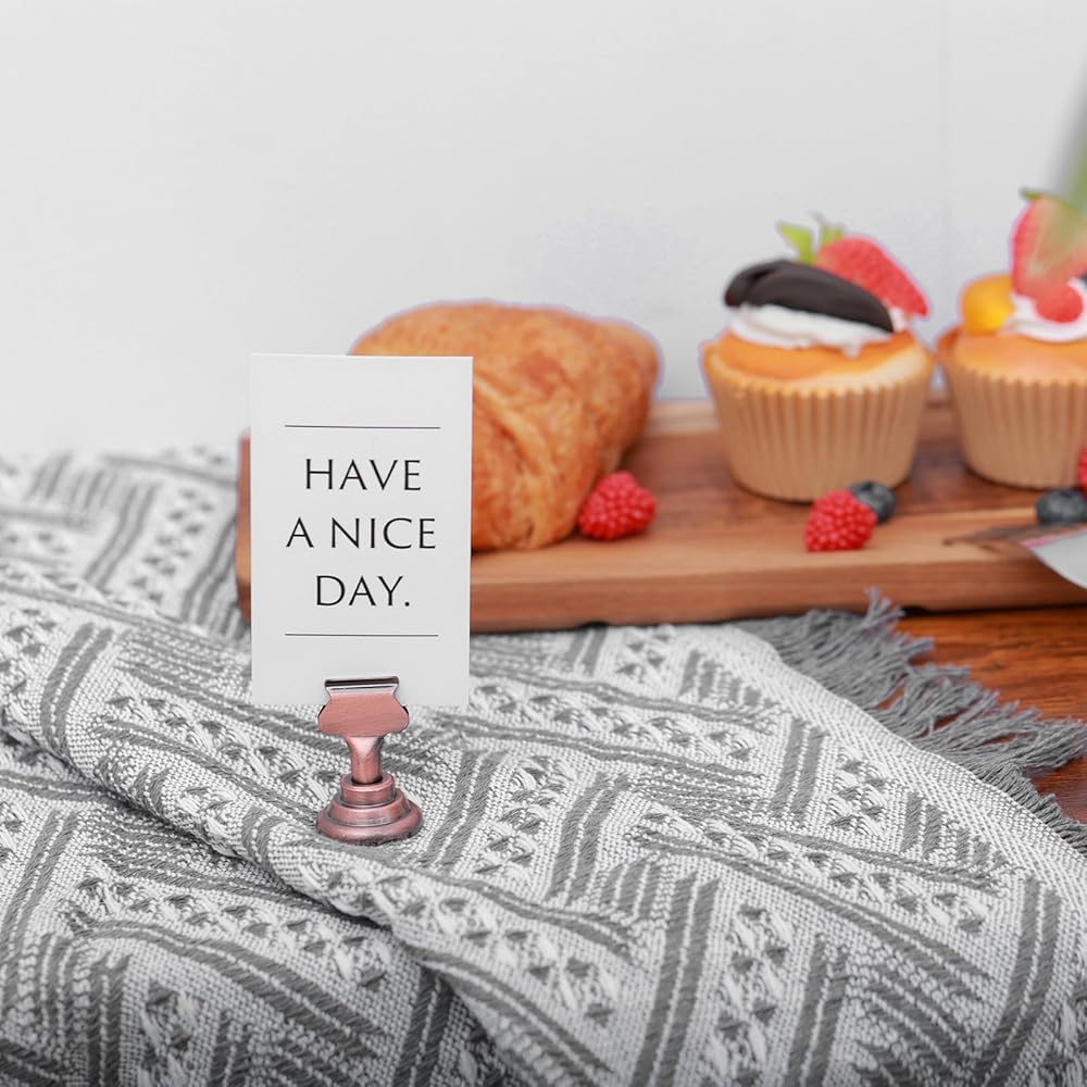 • متعددة الاستخدامات وقابلة لإعادة الاستخدام: حاملات بطاقات المكان صغيرة ولكنها جميلة بما يكفي لجذب انتباه ضيوفك حتى دون شغل مساحة كبيرة من طاولتك. ولا ترميها بعد انتهاء المناسبة، فحاملات البطاقات هذه قابلة لإعادة الاستخدام