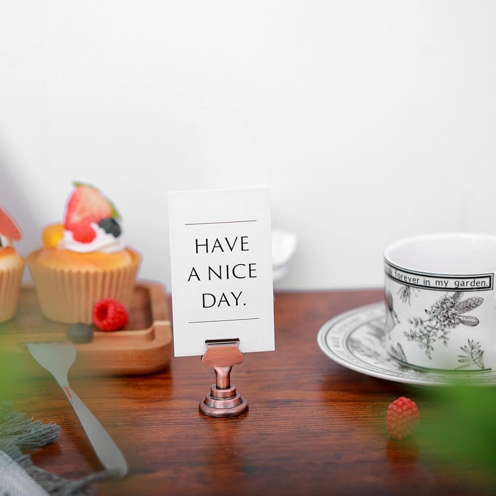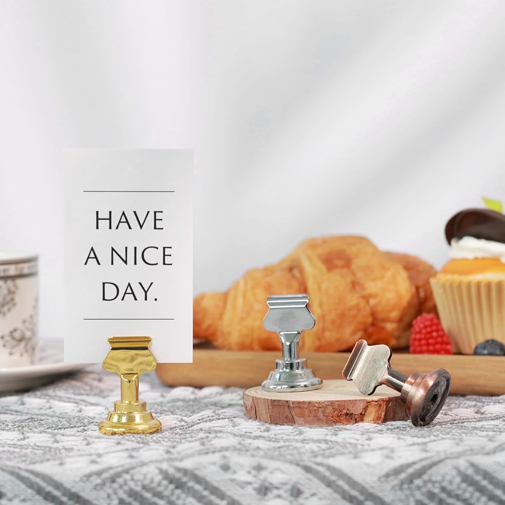 • تشمل العبوة: تتضمن المجموعة 16 قطعة من حاملات لافتات الطاولة، مقاس حامل الصور 1.7 بوصة، إجمالي خمسة ألوان لتختار منها، ذهبي، أسود، فضي، نحاسي، ذهبي وردي، يمكنك الاختيار وفقًا لاحتياجات مناسبتك