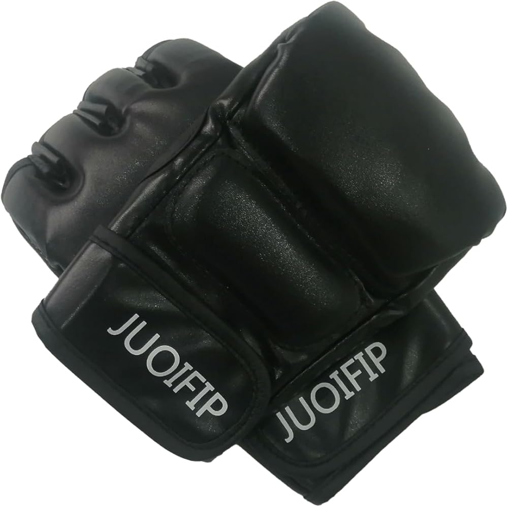 JUOIFIP MMA Boxing Gloves ,Heavy Bag Fighting Training Half Finger Gloves with More Padding , Synthetic Leather Boxing Glove for Training MMA UFC Kickboxing Muay Thai for Men Women