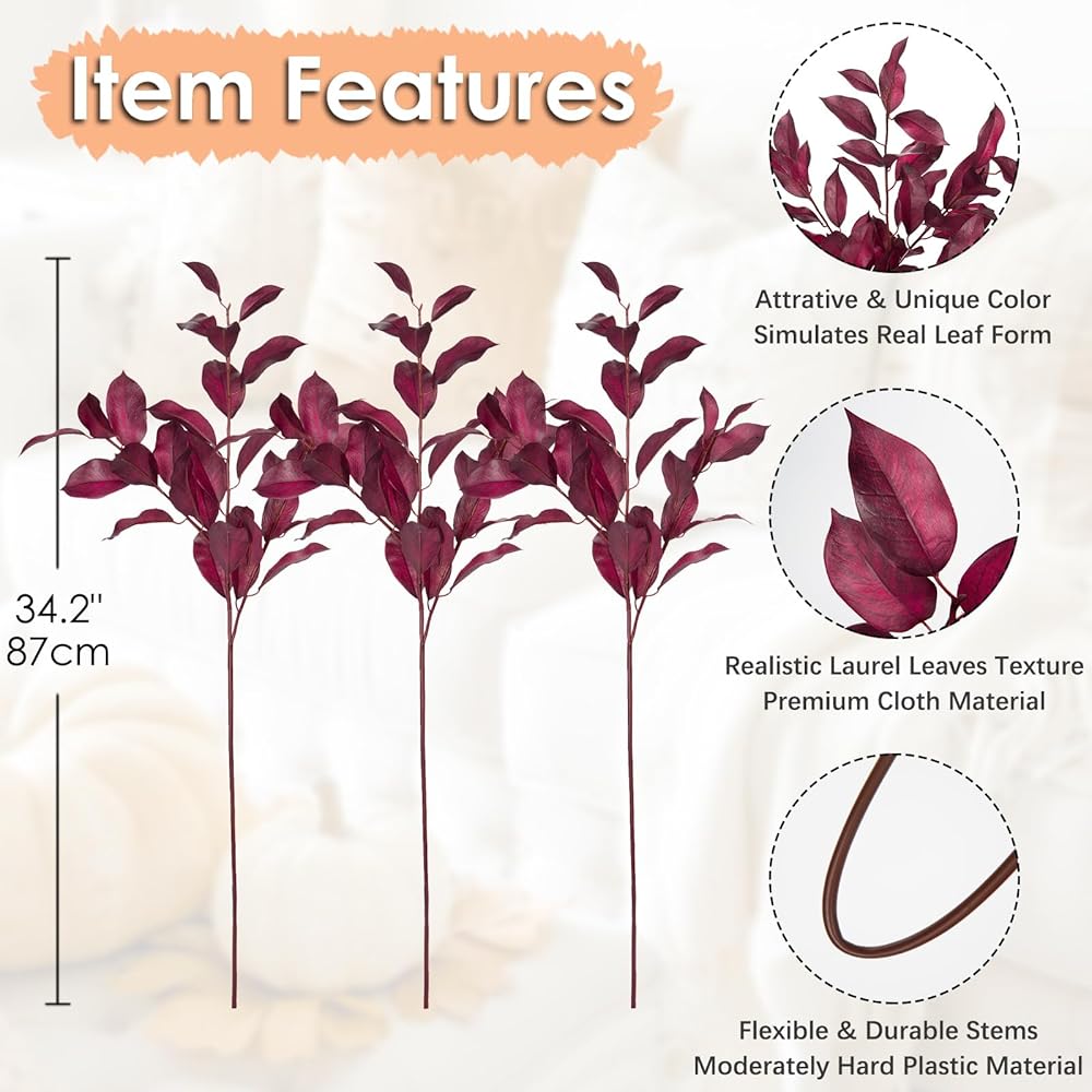 مظهر واقعي - تم تصميم أغصان أوراق الخريف بالشكل الحقيقي لورقة الغار العريضة، وتكون التعرق على سطح أوراق الخريف مرئية بوضوح، مع بقع سوداء موزعة بشكل غير منتظم، ولها ألوان نابضة بالحياة وسيقان واقعية، وتتراوح من الأخضر ، أصفر، برتقالي إلى أحمر، إنه واقعي ورائع، سيكون أكثر حيوية من غيرها من النباتات الخضراء الخريفية ويخلق جوًا خريفيًا قويًا لمنزلك