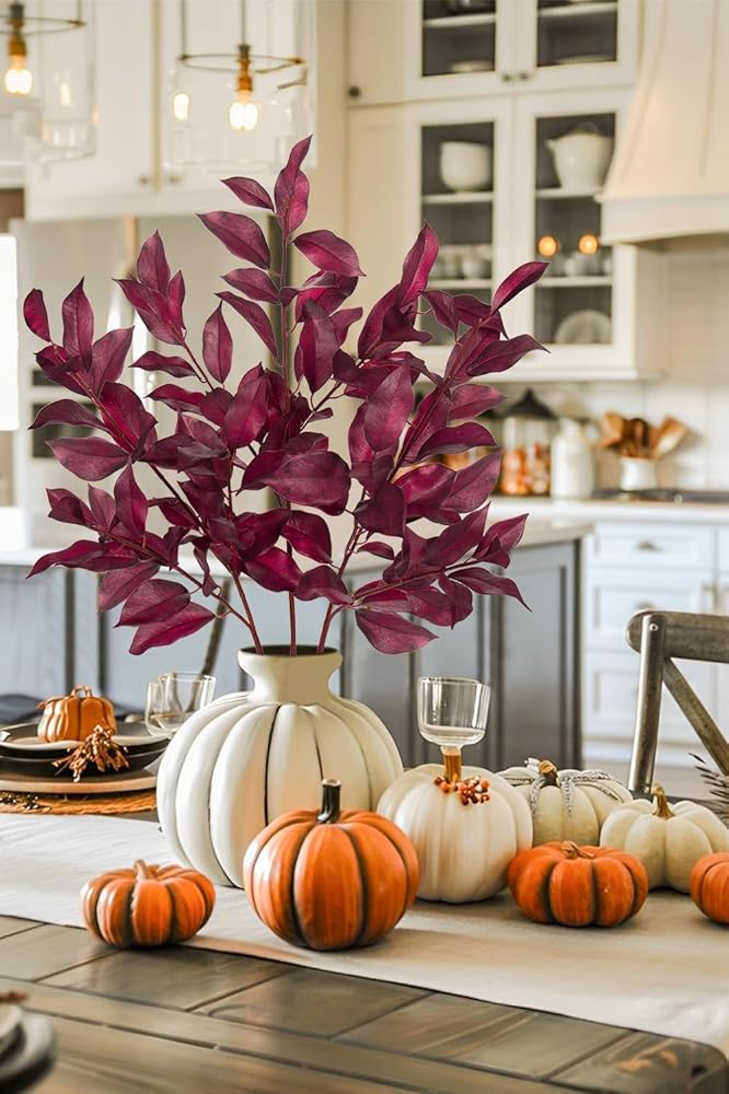 استخدامات واسعة - يمكنك وضع سيقان الخريف الخضراء الواقعية في مزهرية، واستخدامها كقطع مركزية لطاولة الحفلات/طاولة الزفاف/طاولة الطعام/طاولة القهوة/الأرفف/الطاولات/الأغطية. إنه مثالي لتزيين المنزل، المكتب، المتجر، البار، طاولة القهوة، قطعة مركزية لطاولة الطعام، رف الكتب، المدفأة، الفناء، غرفة النوم، المطبخ، غرفة النوم، غرفة المعيشة، بيت المزرعة، الفندق في الحفلات، عيد الشكر، الكريسماس، الهالوين وما إلى ذلك.