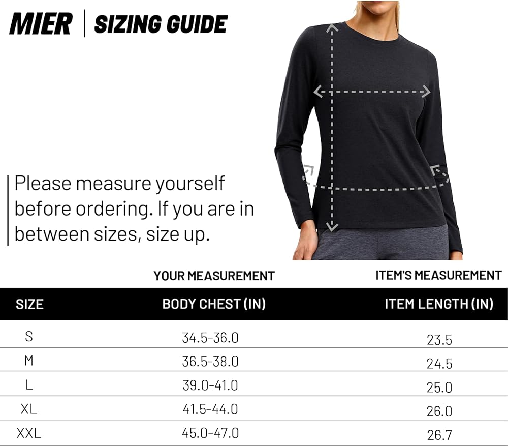 نسيج فائق النعومة: استمتع بأقصى درجات الراحة والأداء مع تي شيرتات MIER النسائية ذات المقاس الجاف. يتميز نسيج مزيج البوليستر والألياف اللدنة بالنعومة والتمدد في أربعة اتجاهات ومريح وممتص للرطوبة وسريع الجفاف