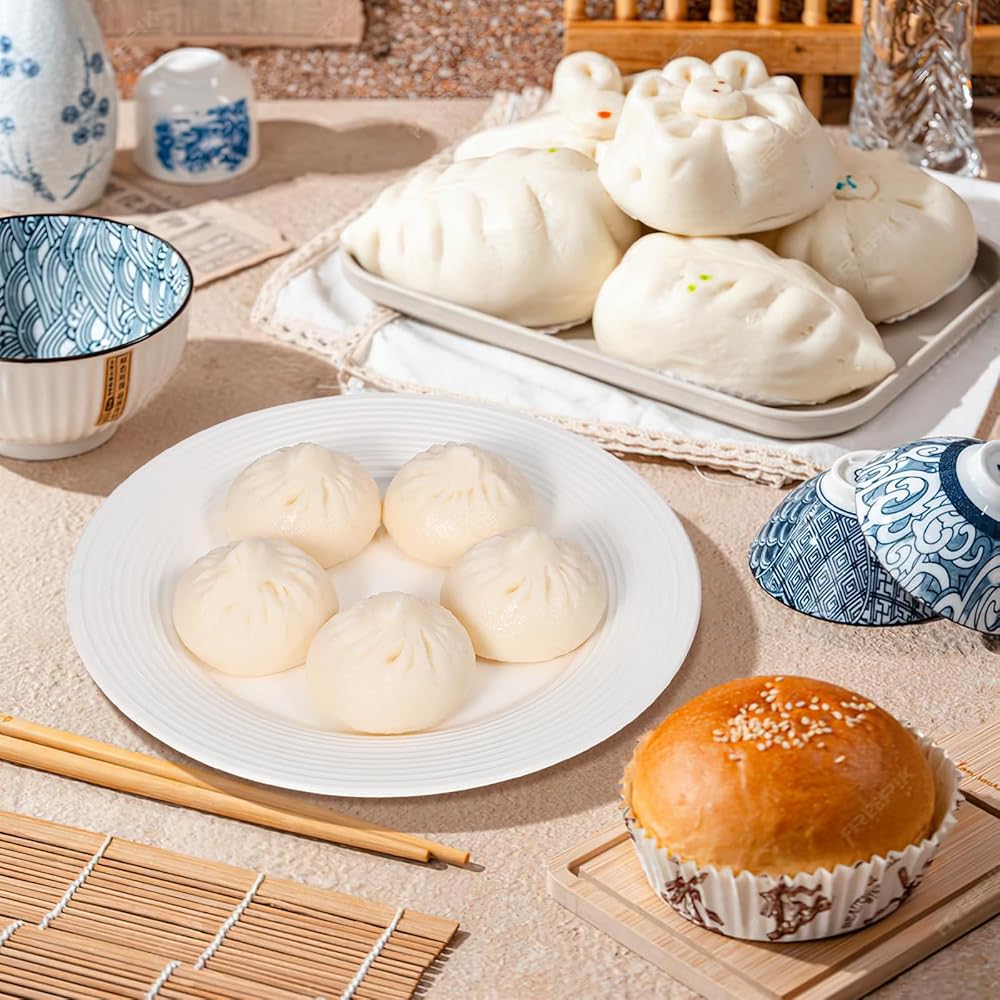 5 قطع من الزلابية الاصطناعية المزيفة على البخار المحشوة على البخار محاكاة نموذج الطعام الصيني النابض بالحياة للمنزل والمطبخ وعرض الديكور