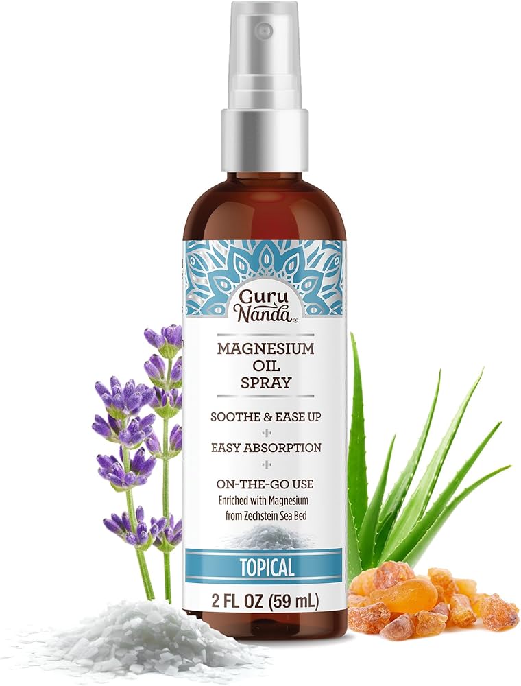 رذاذ زيت المغنيسيوم Gurunanda (2 أوقية) ، رذاذ المغنيسيوم الموضعي مع الزيوت الأساسية الطبيعية والألوة فيرا ، يساعد في وجع العضلات والاسترخاء ، خالية من القسوة