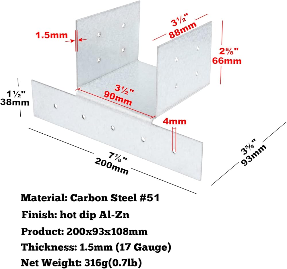 4 قطع من دعامات العوارض الخشبية العلوية لعمود 4 × 4، 17 غطاء رأس شعاع قياس، دعامات تثبيت فولاذية لربط السقف تدعم المنزل الخشبي أو إطار سقف فولاذي خفيف الوزن