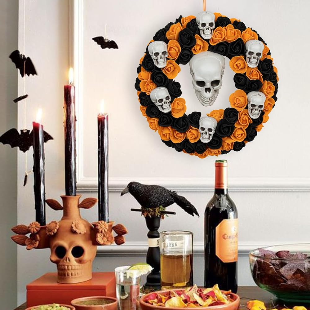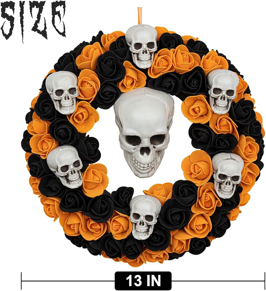 【Note】The skull wreath is designed for indoor use. If you want to use it outdoors, please make sure to hang it under covered places to avoid rain and snow.If you have any questions,please contact us,we will reply in time.