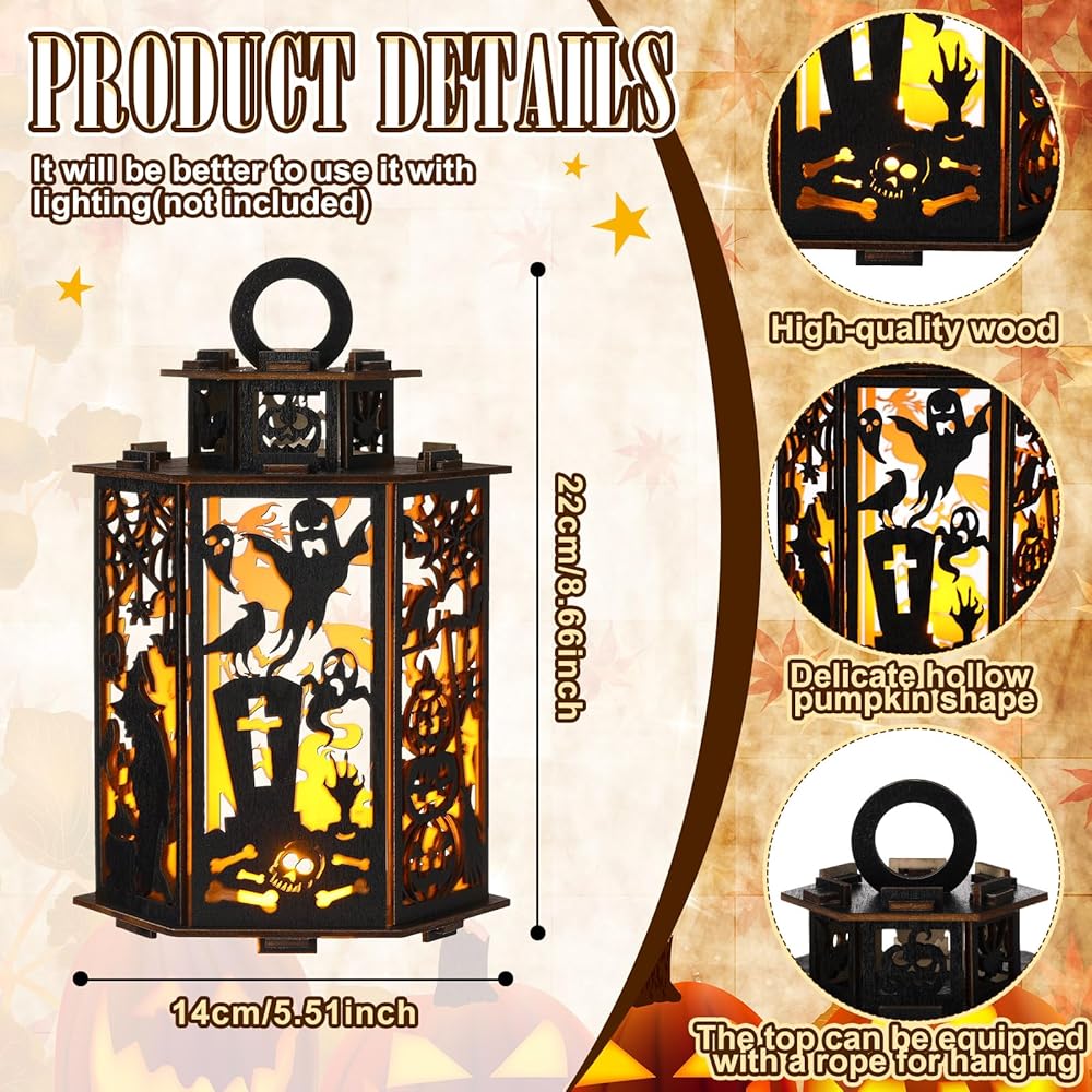 The Halloween hanging lantern is made of the finest wood, ensuring longevity. This strong wooden material adds natural charm to your Halloween decorations, making it a lovely complement for any indoor Halloween decoration design.