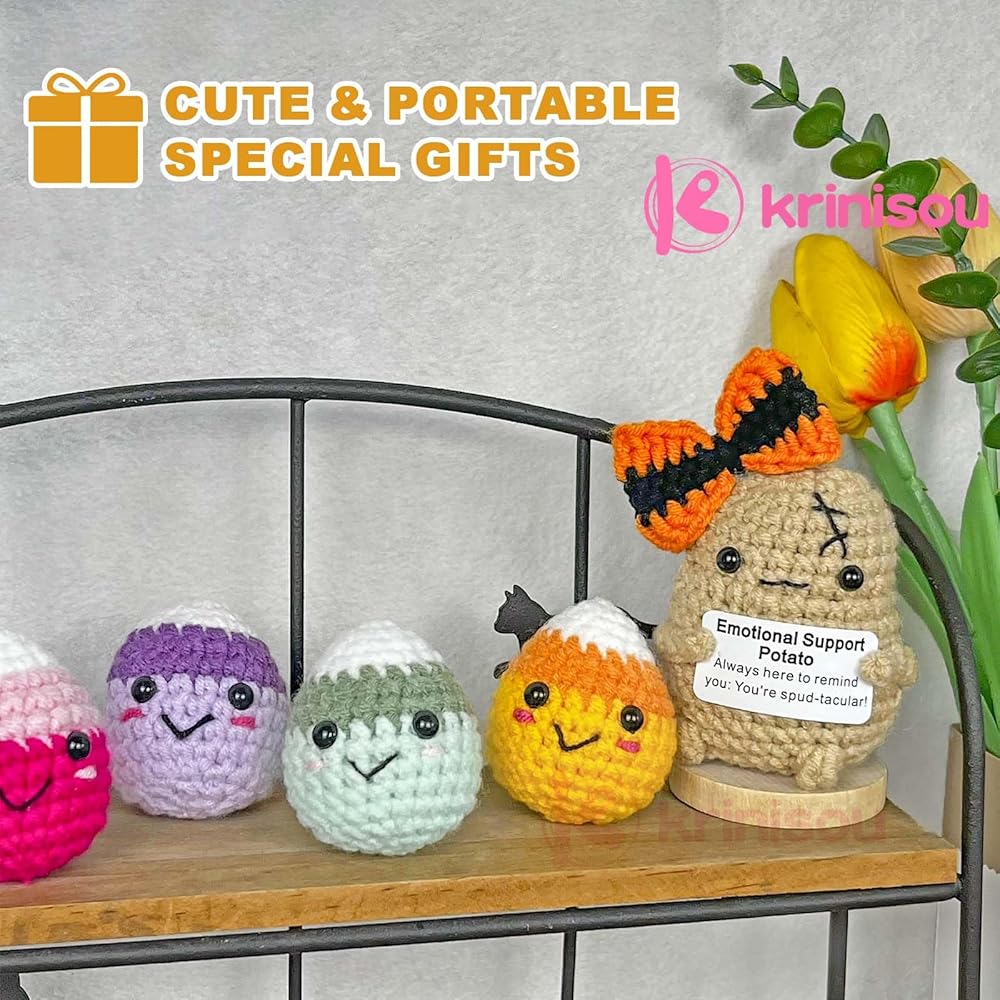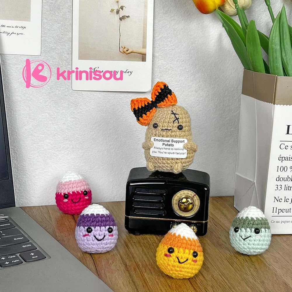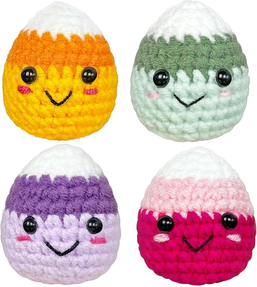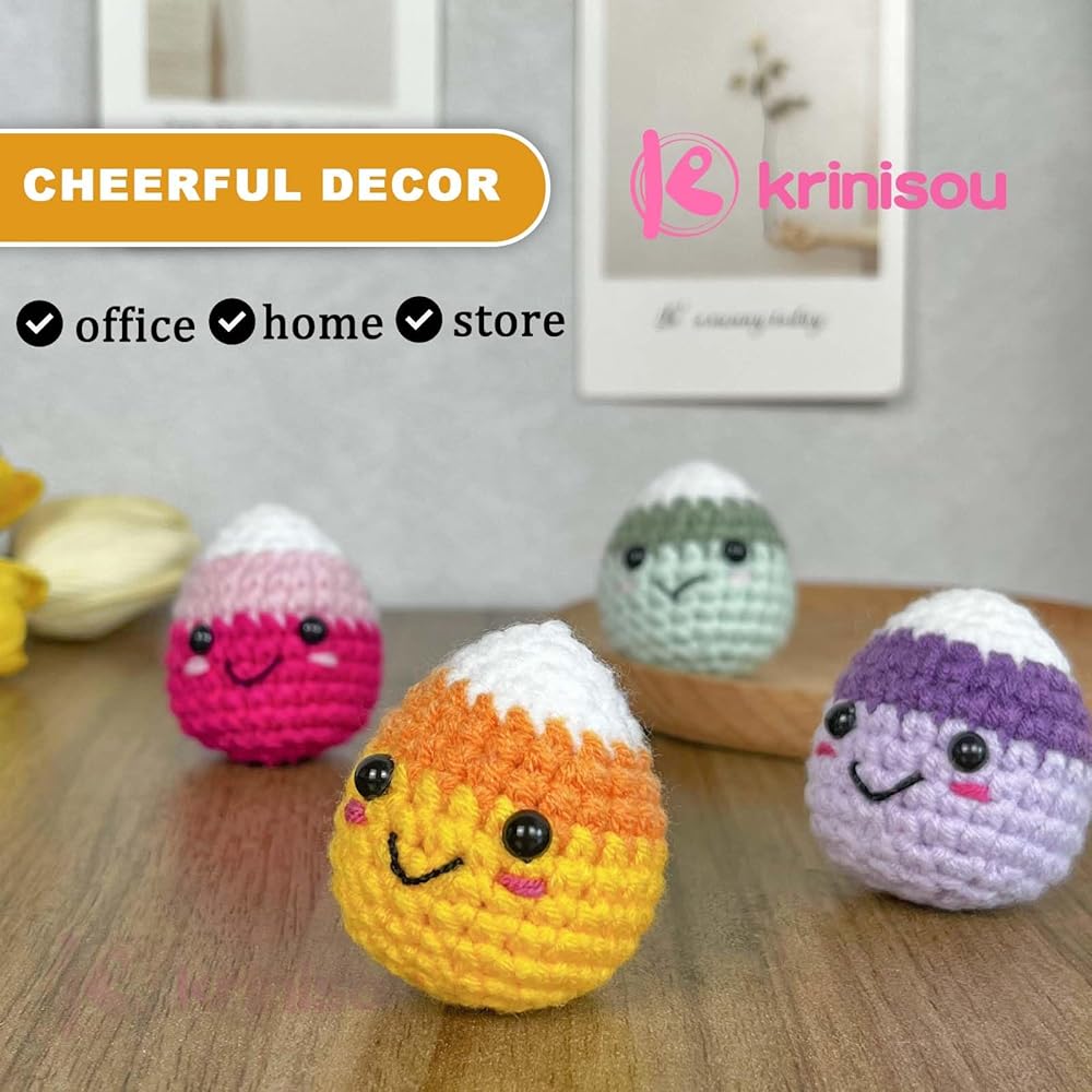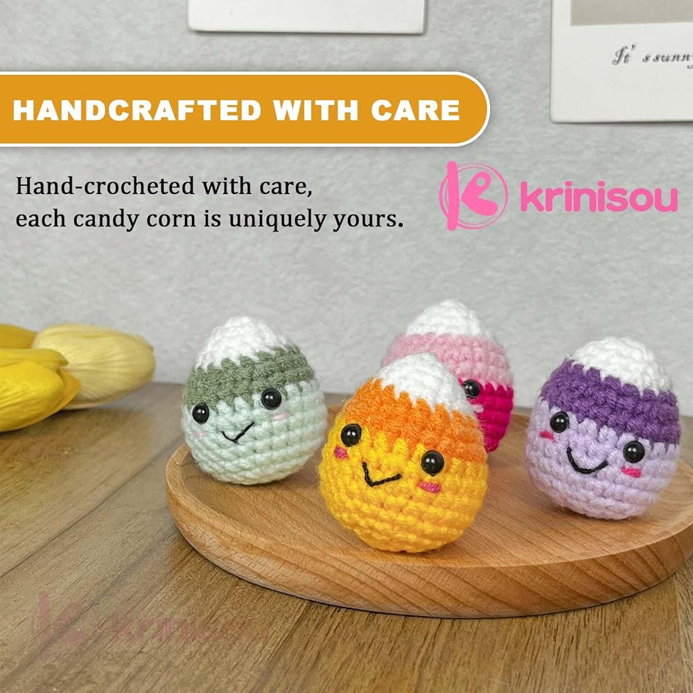 ديكور فريد من نوعه للهالوين: أضف لمسة من الألوان إلى عيد الهالوين الخاص بك مع حلوى Krinisou اللطيفة المصنوعة يدويًا من الكروشيه. تحتوي كل مجموعة على أربعة ألوان: الأصفر والأخضر والأرجواني والوردي