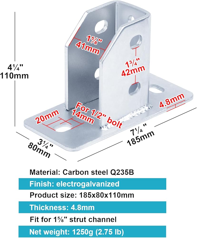 2 حزمة من 2 فتحة قاعدة حامل لقناة تبختر واحدة 1-5/8 بوصة، 7-1/4 بوصة × 3-1/4 بوصة × 4-1/4 بوصة موصل للأرضية يناسب مسمار 1/2 بوصة، جلفنة كهربائية ستيل، سماكة 4.8 ملم in Kuwait 2 حزمة من 2 فتحة قاعدة حامل لقناة تبختر واحدة 1-5/8 بوصة، 7-1/4 بوصة × 3-1/4 بوصة × 4-1/4 بوصة موصل للأرضية يناسب مسمار 1/2 بوصة، جلفنة كهربائية ستيل، سماكة 4.8 ملم in Kuwait