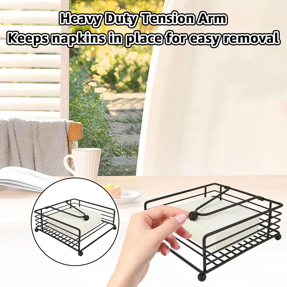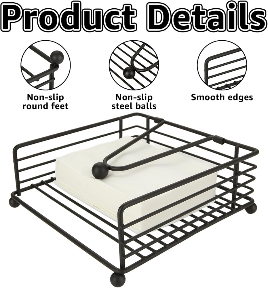 【Sturdy material】Our napkin holders are made of sturdy and durable iron, not easy to bend and deform, smooth welds won't puncture or tear napkins, durable construction ensures a long life for the holder