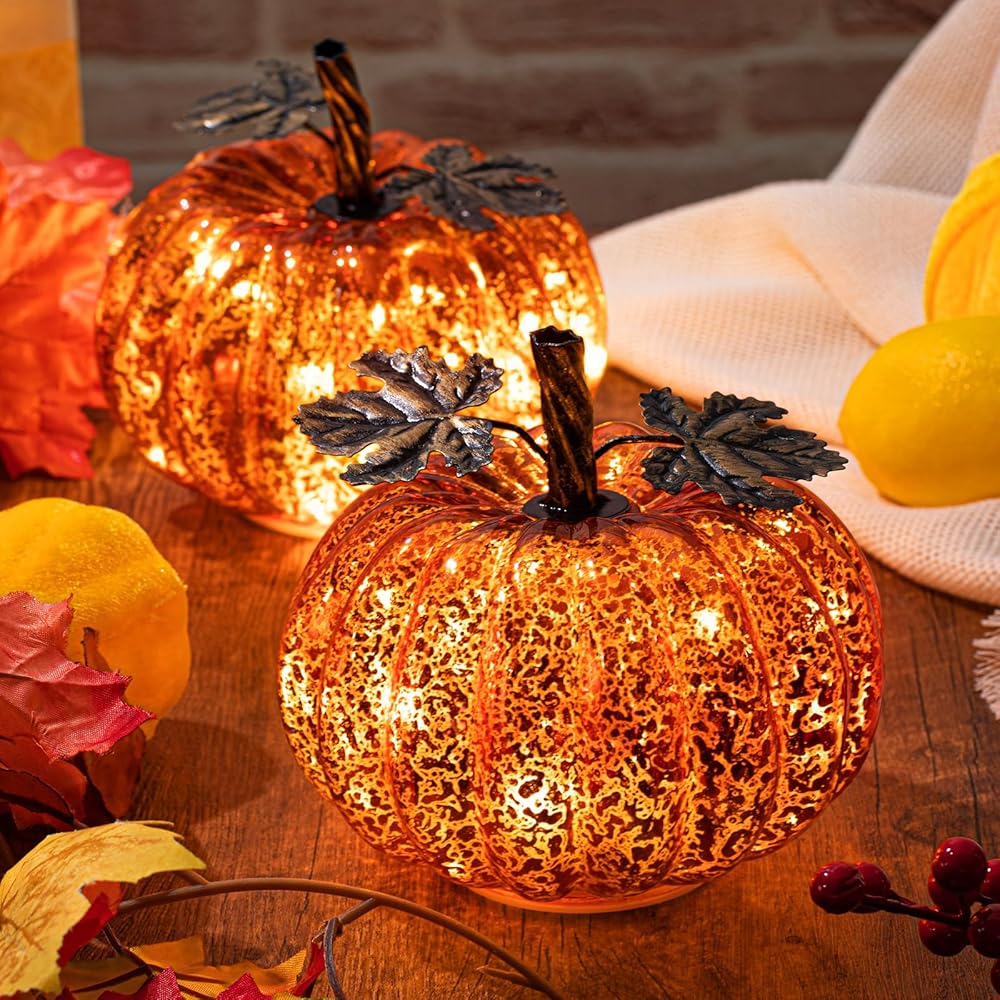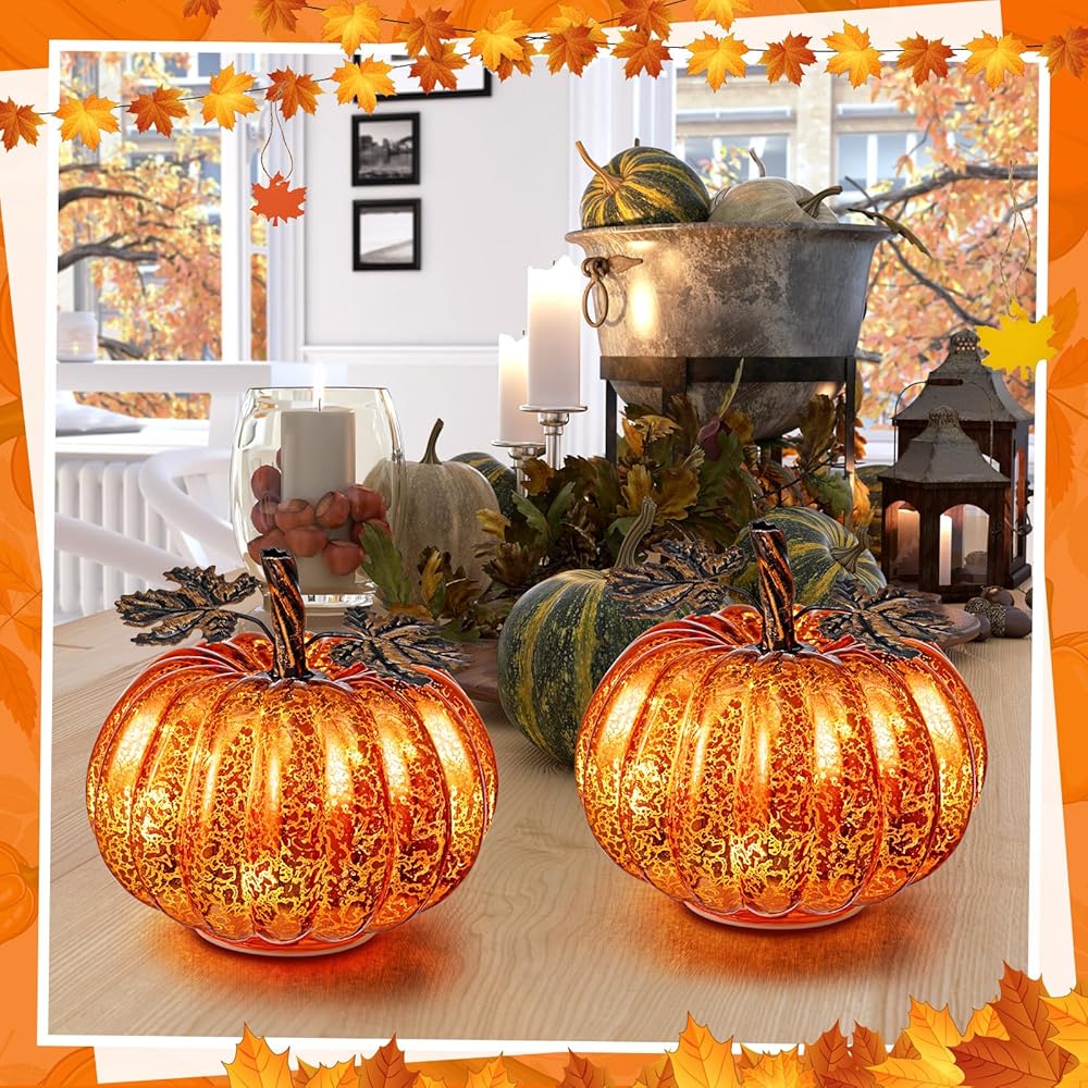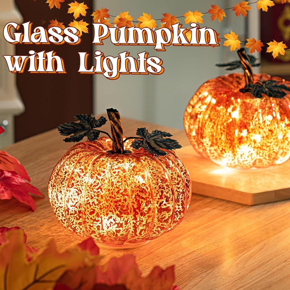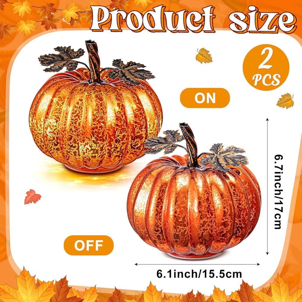 2 Pcs Thanksgiving glass pumpkin LED lights
